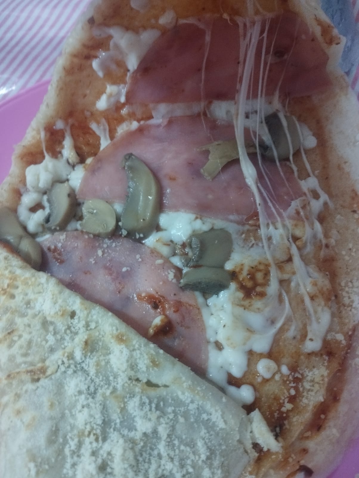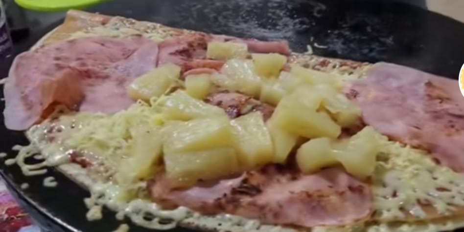 Masa cocinada muy delgada base de harina de trigo en forma de disco, a la cual se le agrega salsa de tomate, queso para derretir, jamón, piña y queso parmesano. (Chimichurri).