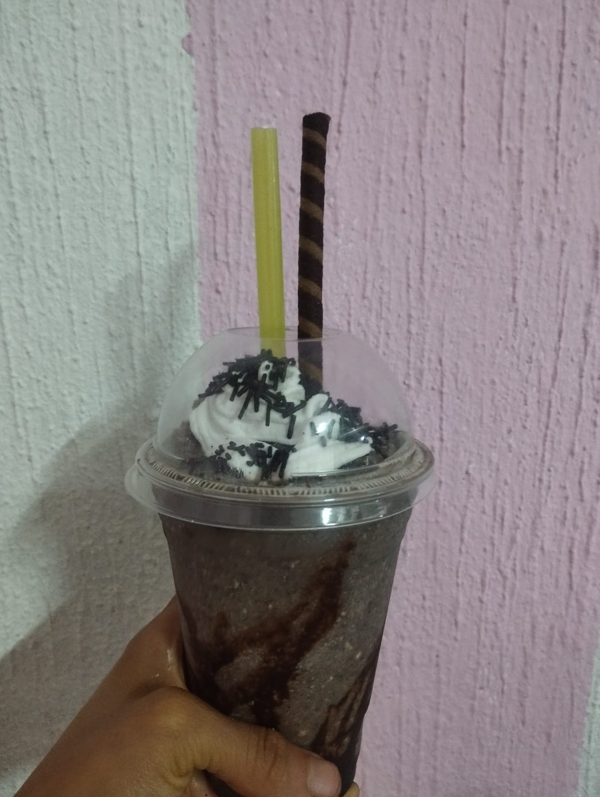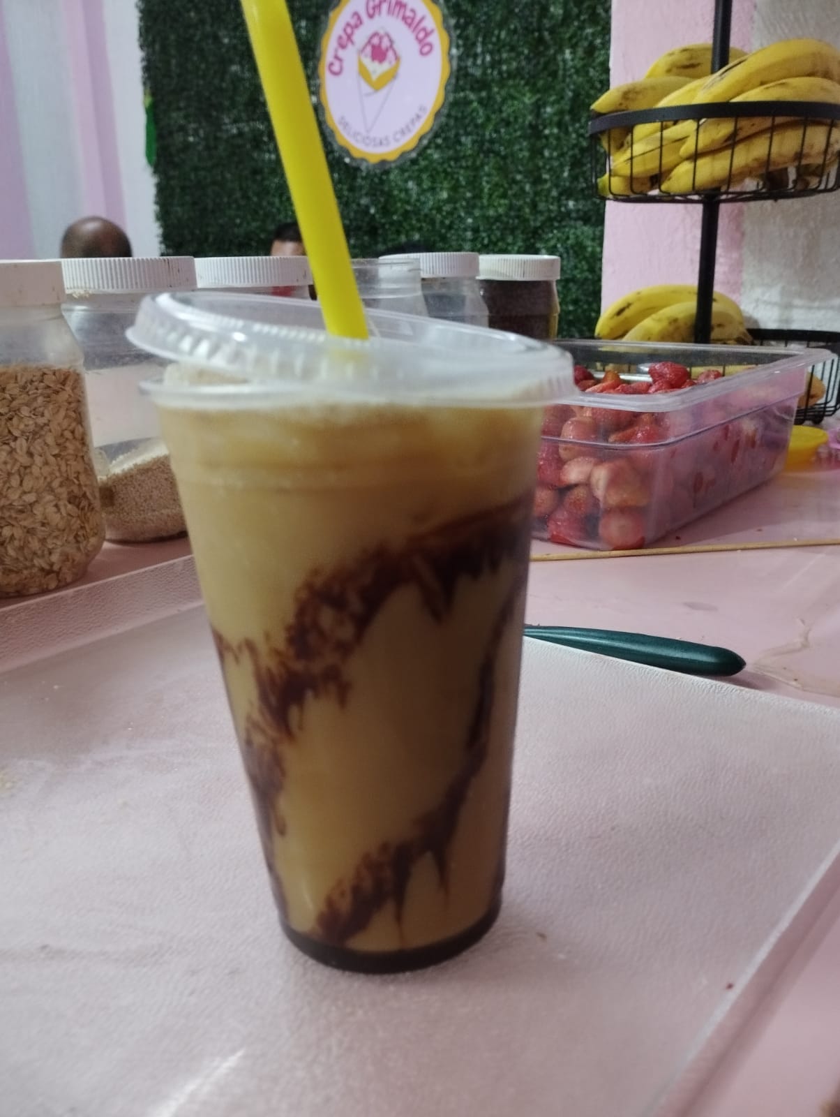 Bebida parcialmente congelada a la cual se le agrega azúcar, leche, hielo y el sabor de elección del cliente, (Crema batida, hershey´s, tubo de galleta y granillo de chocolate).