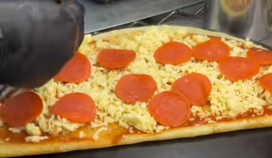 Masa cocinada muy delgada base de harina de trigo en forma de disco, a la cual se le agrega salsa de tomate, queso para derretir, pepperoni y queso parmesano. (Chimichurri).
