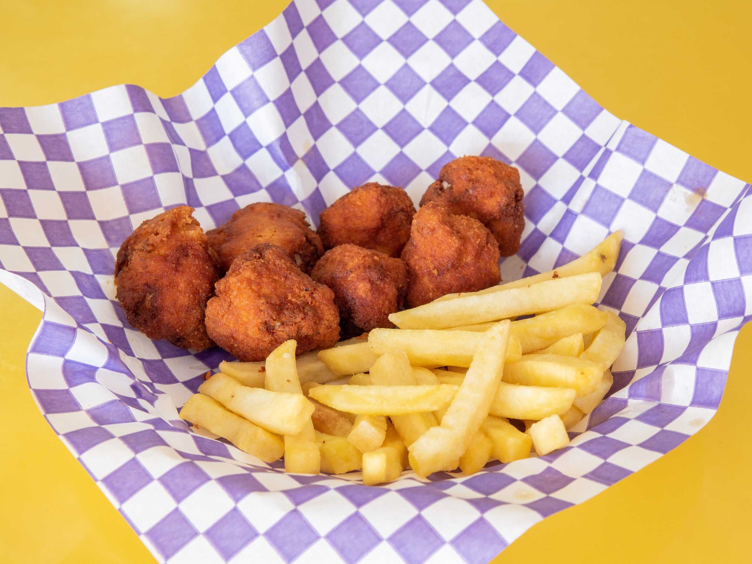 Hamburguesa de Camarón con Papas