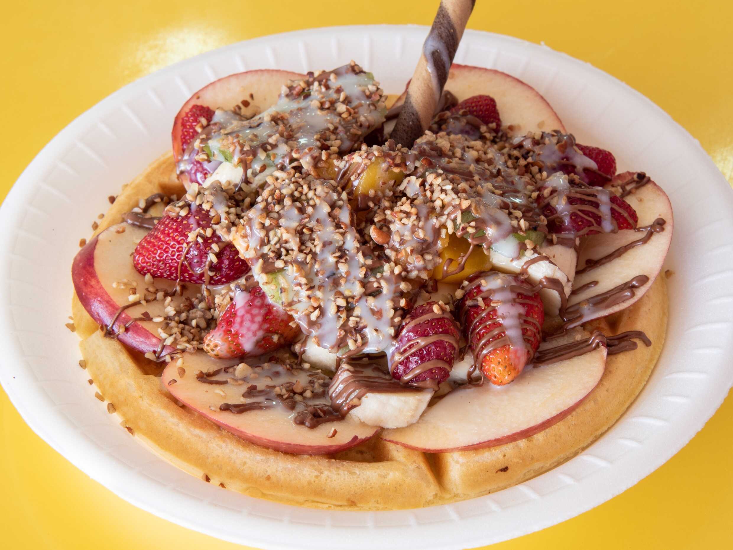 Nutella, Lechera, nuez, fresa, plátano, kiwi, manzana y durazno.