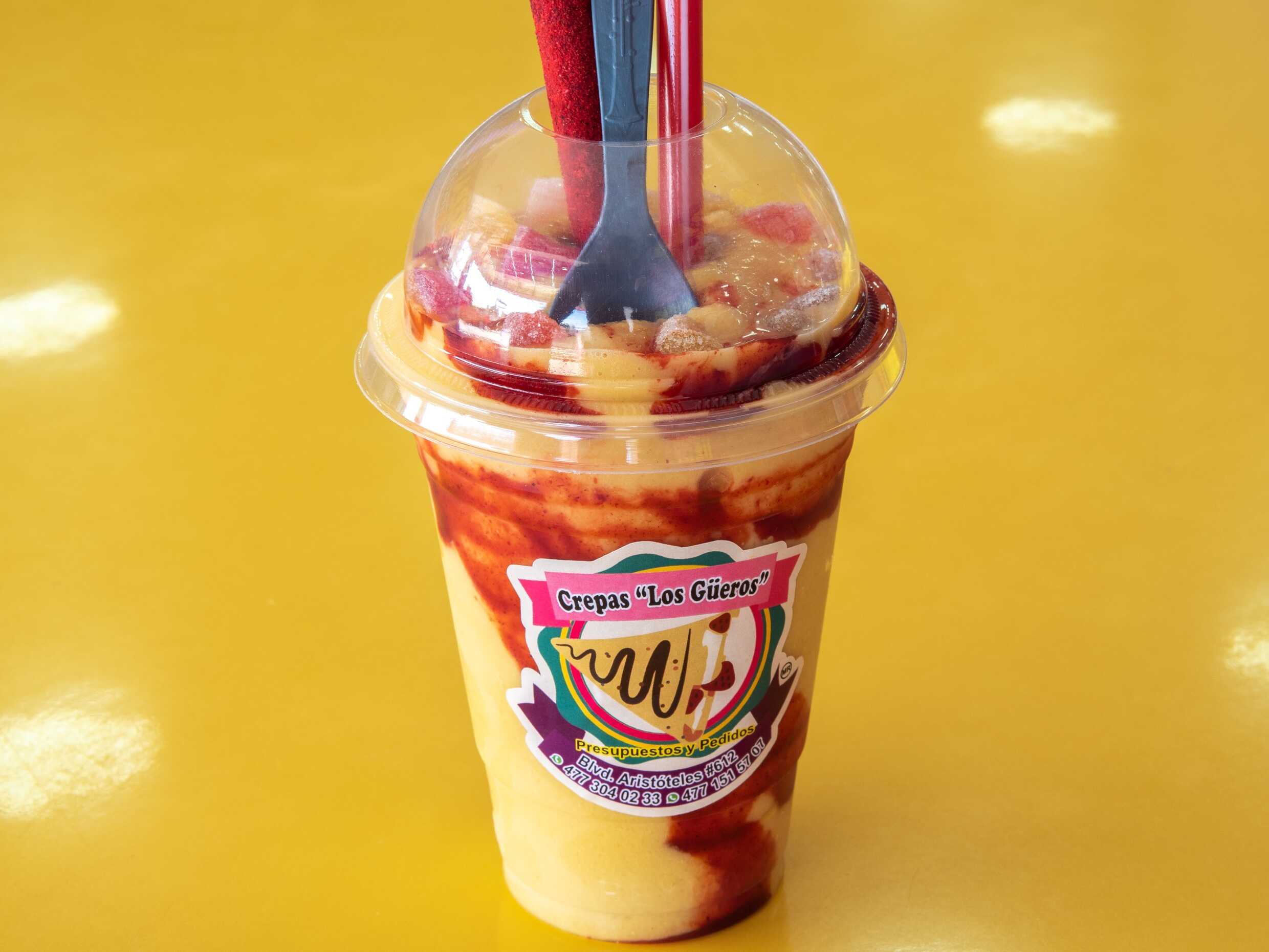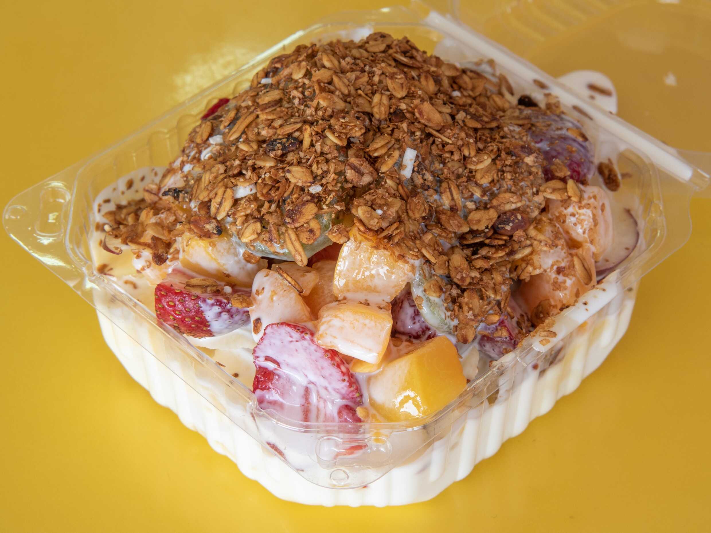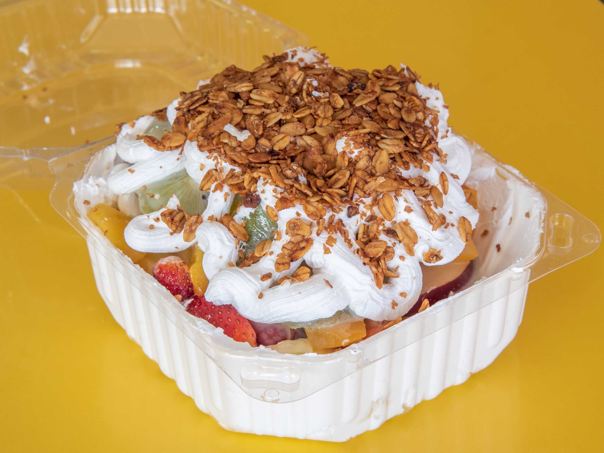 Chantilly, manzana, plátano, fresa, durazno, kiwi, Lechera y granola.