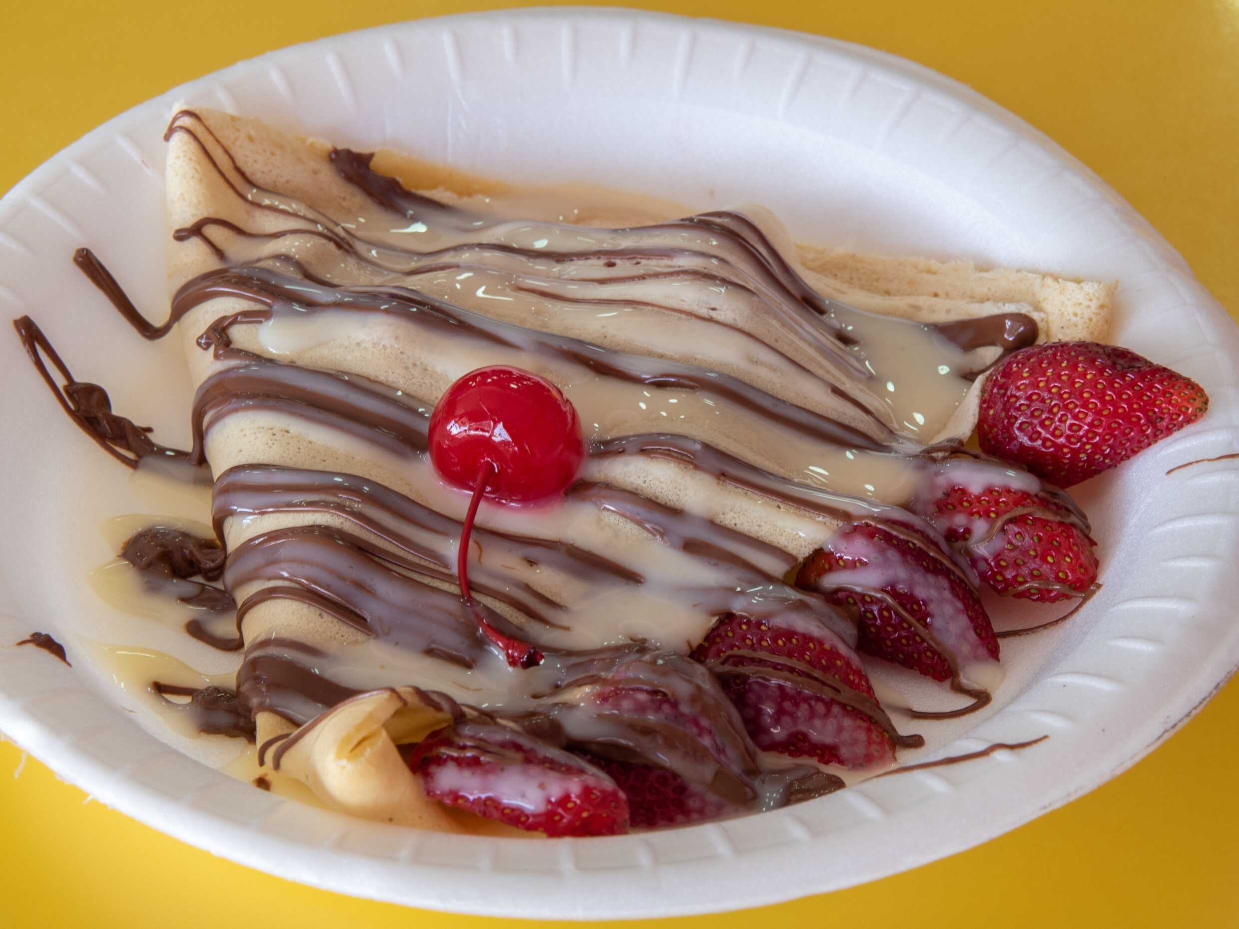Crepa Sencilla, con fresa, lechera, nutella y cereza