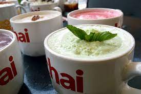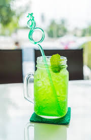 Bebida a base de agua mineral, jarabe de crema de menta, fruta y perlas explosivas.