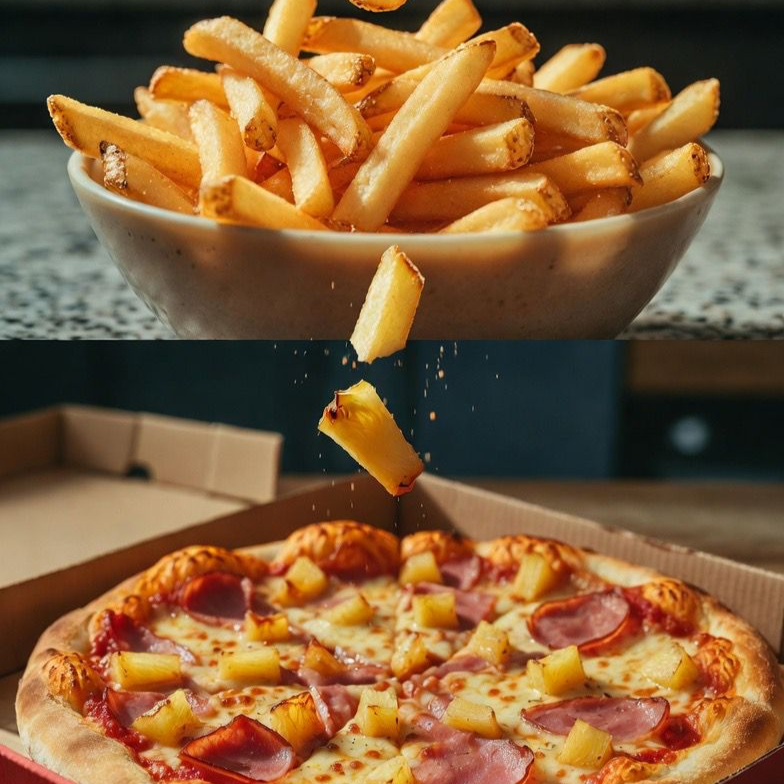 Pizza Grande Jamon y Piña y papas a la Francesa