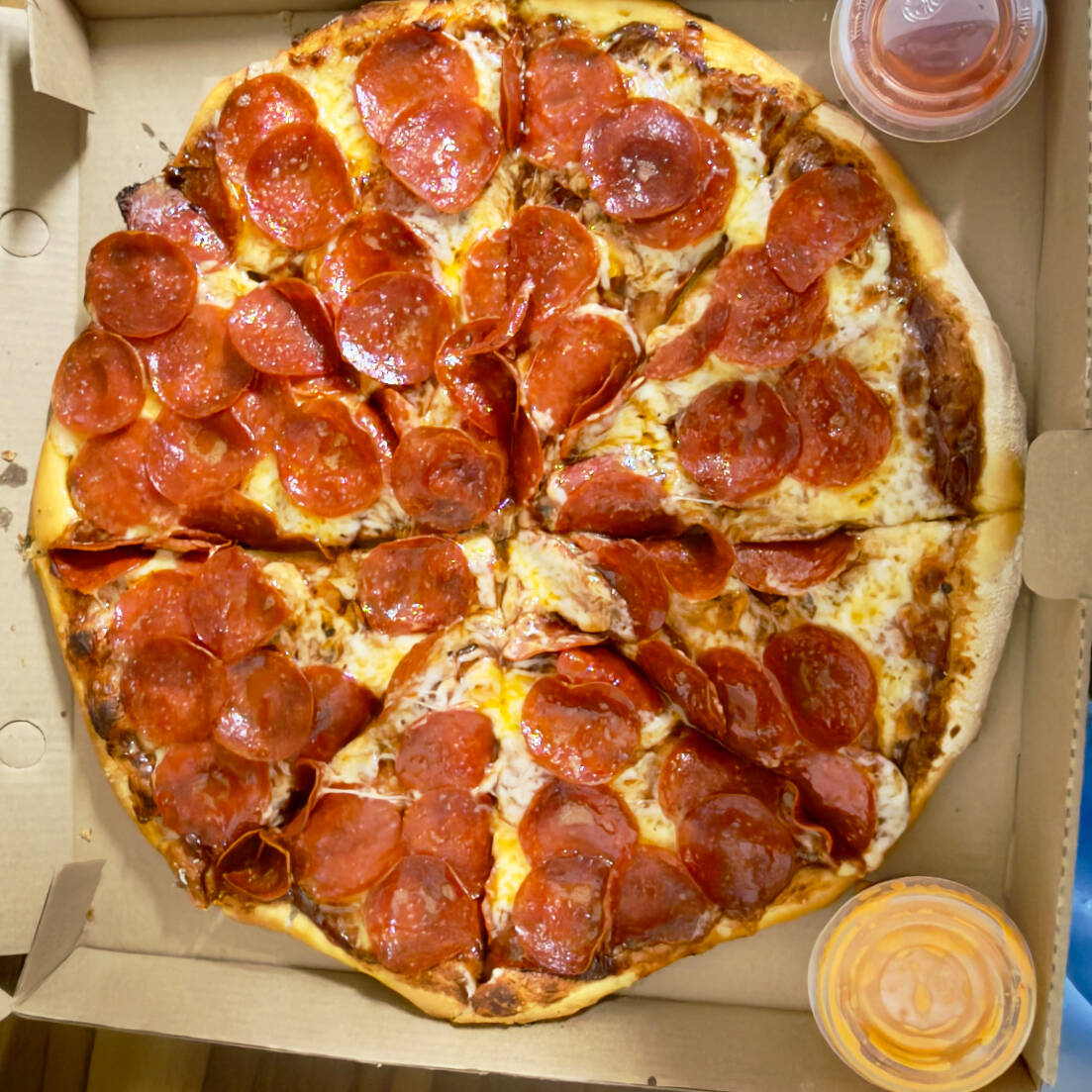 Pizza Jumbo Pepperoni con queso 100% Mozzarella porción para 3 o 4 personas