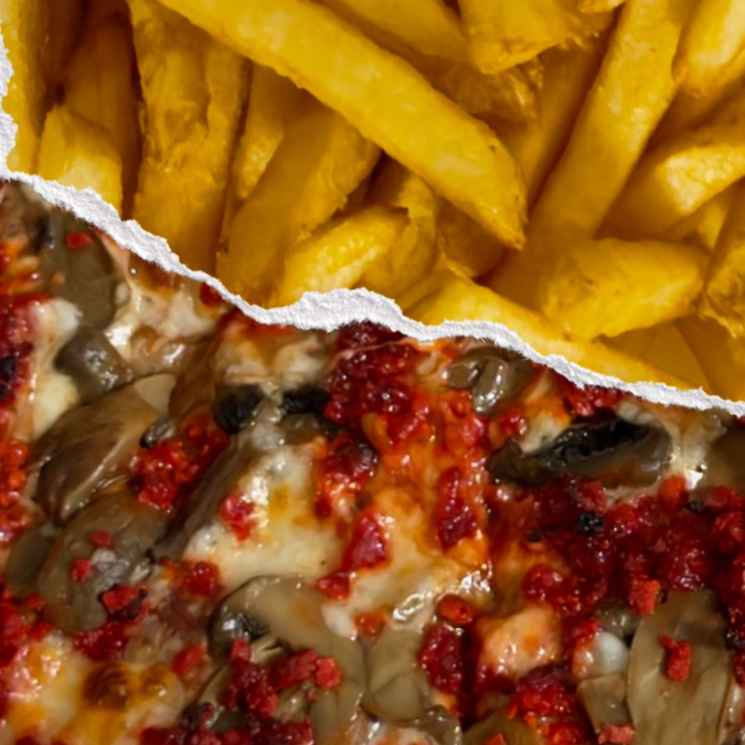 Pizza Grande Chorizo y Champiñones*1 + Papas Fritas Clásicas*1