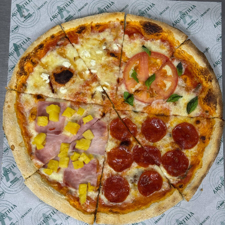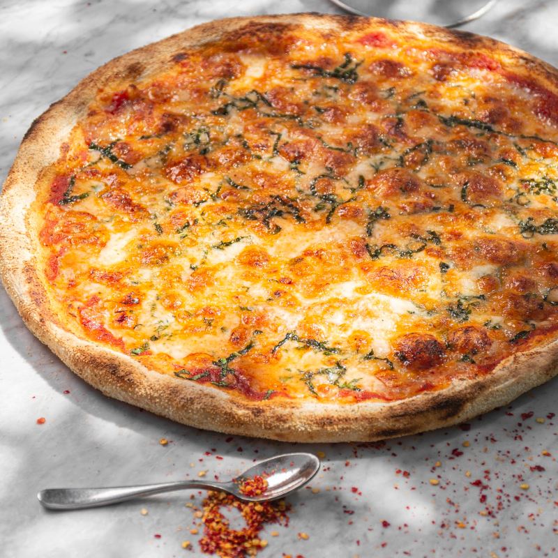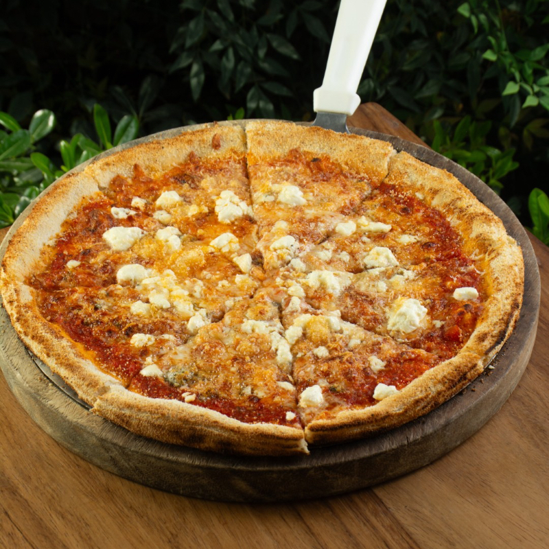 Salsa pomodoro, queso Monterrey Jack, roquefort, cabra y parmesano.