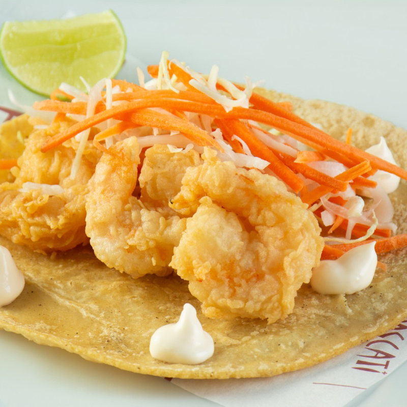 Con tortilla de comal, mayonesa y emulsión de habanero.