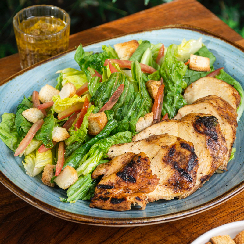 Lechuga orejona con pechuga de pollo a la parrilla (180 gm) y aderezo italiano de la casa.