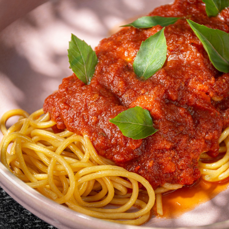 Salsa a base de tomate importado italiano, albahaca fresca y aceite de oliva.