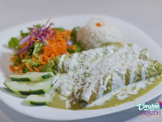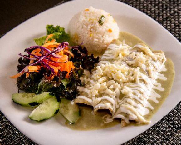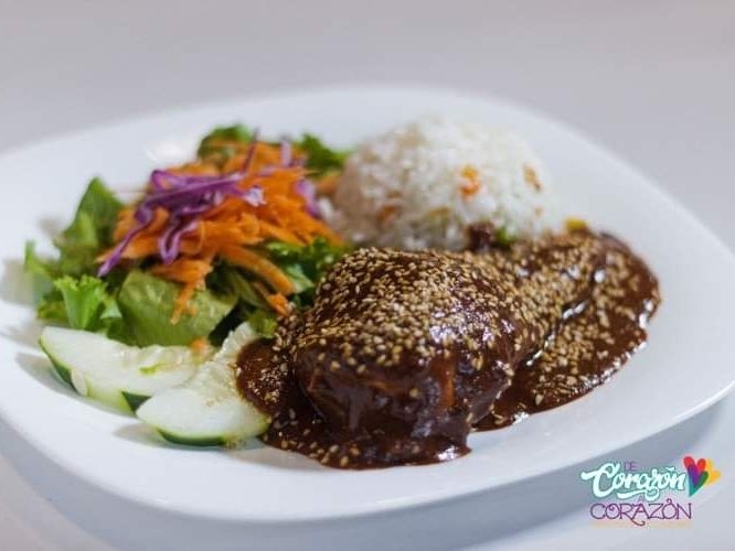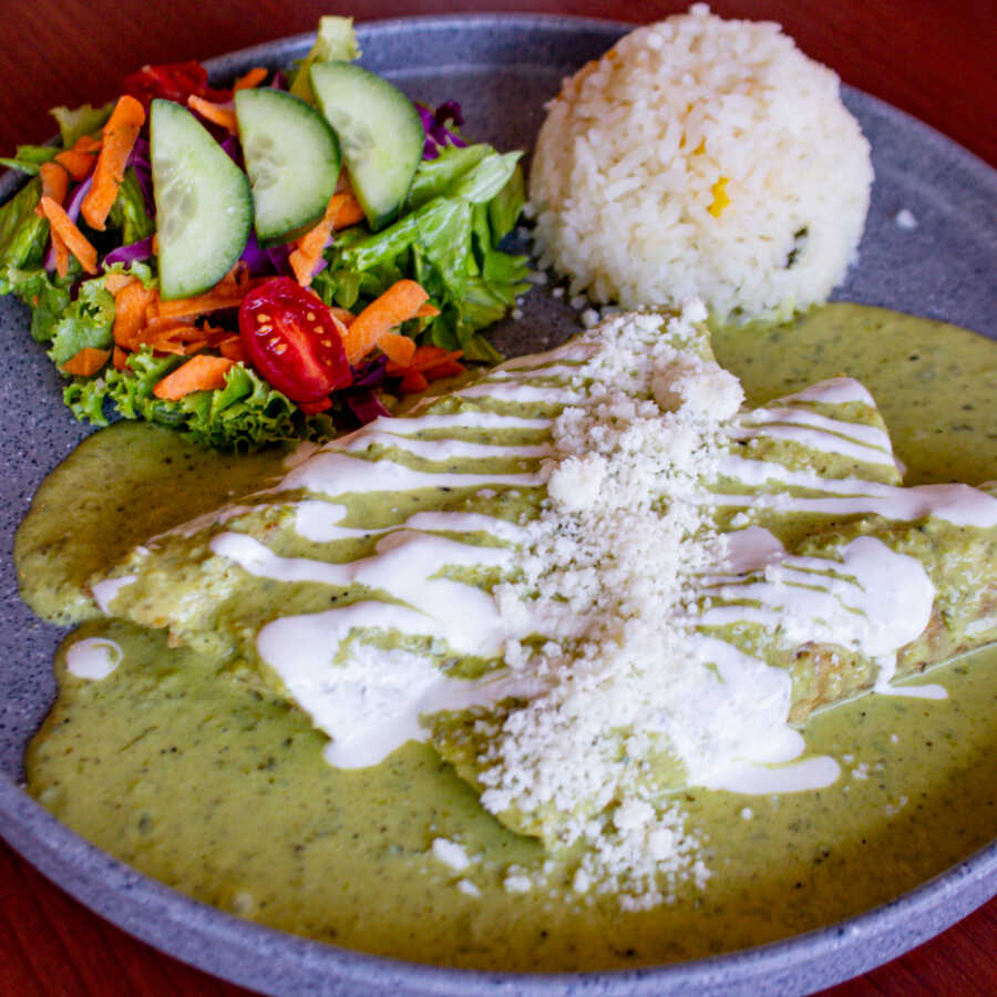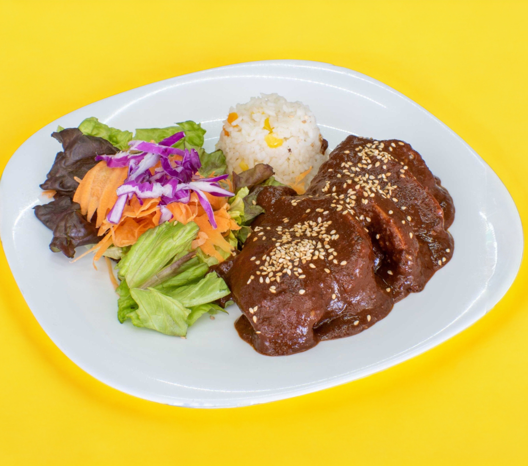 5 piezas rellenas de pollo bañadas en salsa poblana