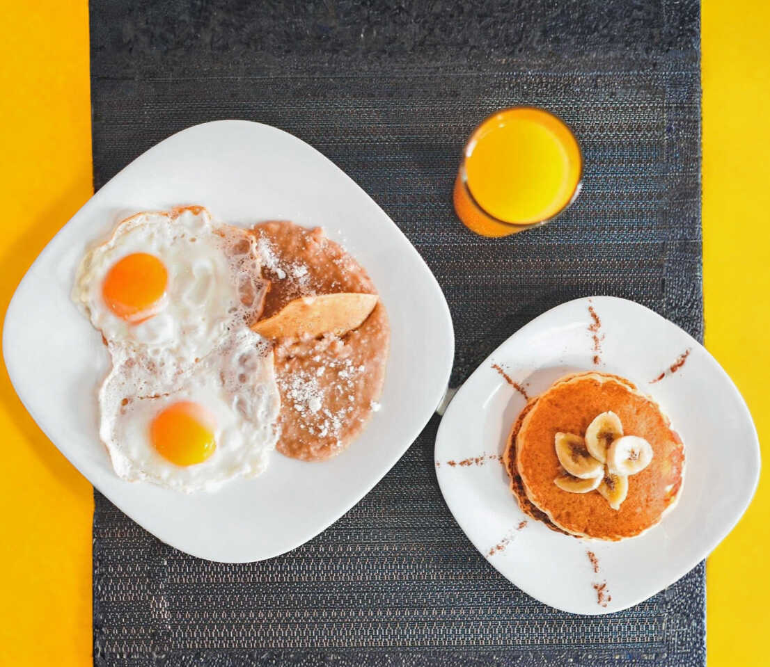 Hot cakes, chilaquiles, huevo, frijoles y jugo. (personal )
