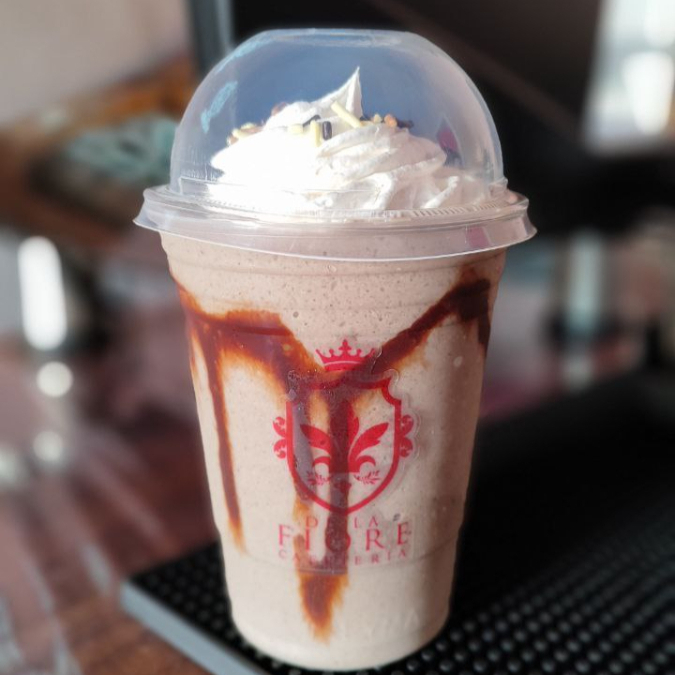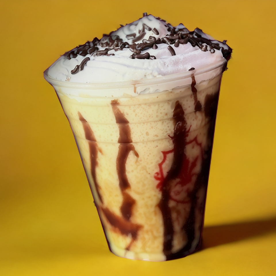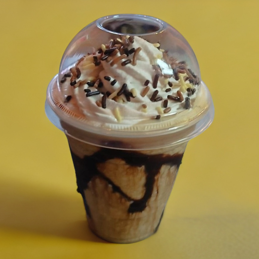 Base de leche, hielos, polvo de chocolate, café, chispas de chocolate y crema batida(12oz)