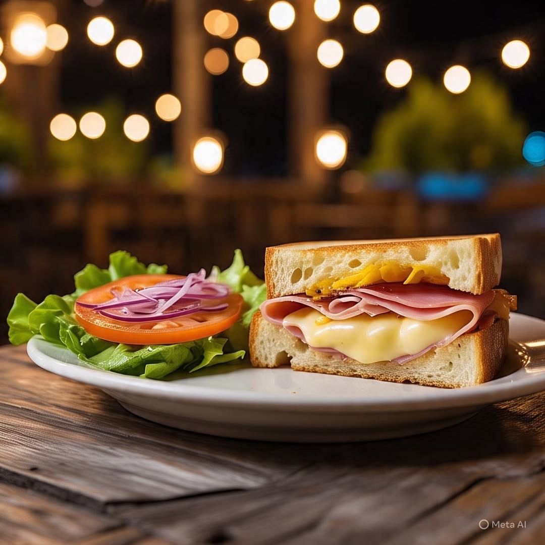 Pan masa madre jamón de pierna y doble queso.