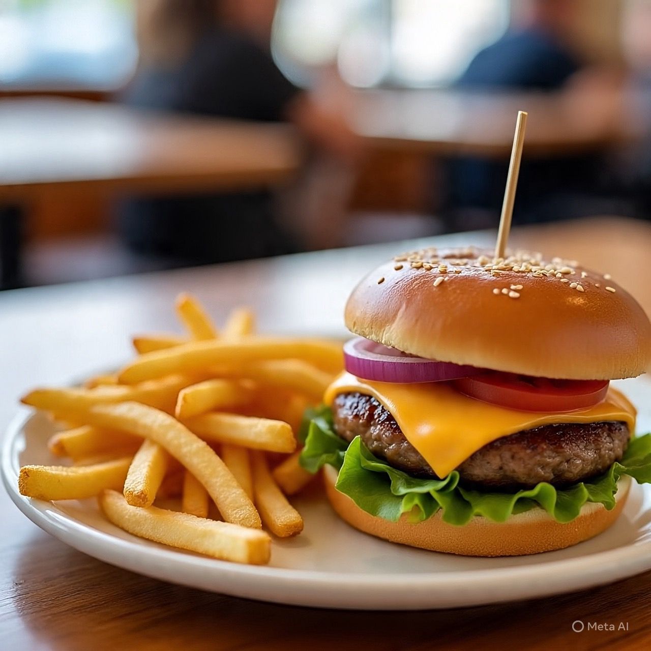 Carne de res (100 g), solo lleva queso, carne, pan, acompañado de papas a la francesa.