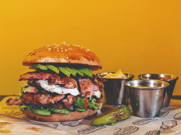 120 gr de Arrachera, tocino, queso Oaxaca, aguacate, lechuga, pico de gallo, cebolla caramelizada y mayonesa chipotle. Proteína: Carne de res.