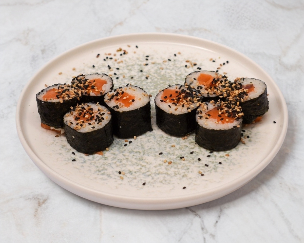8 piezas de rollo estilo maki (alga por fuera) relleno de salmón