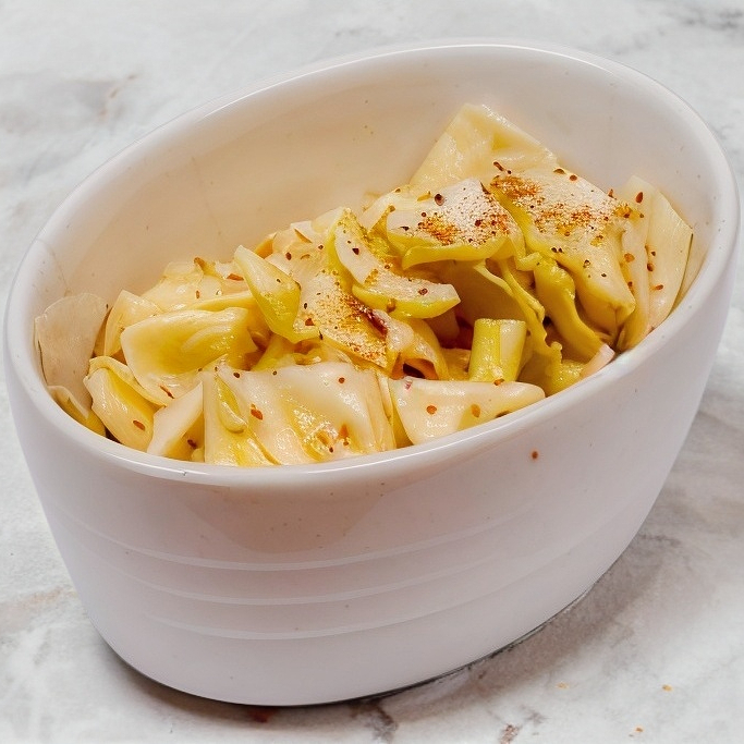 Col sazonada con aceite de ajonjolí, sal y pimienta