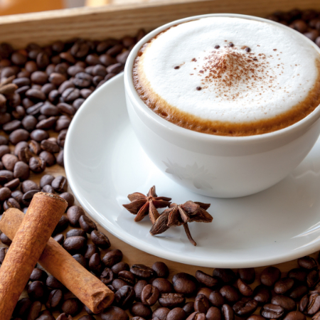 Café espresso con una suave capa de leche espumosa, ideal para los amantes de las bebidas cremosas y aromáticas.
