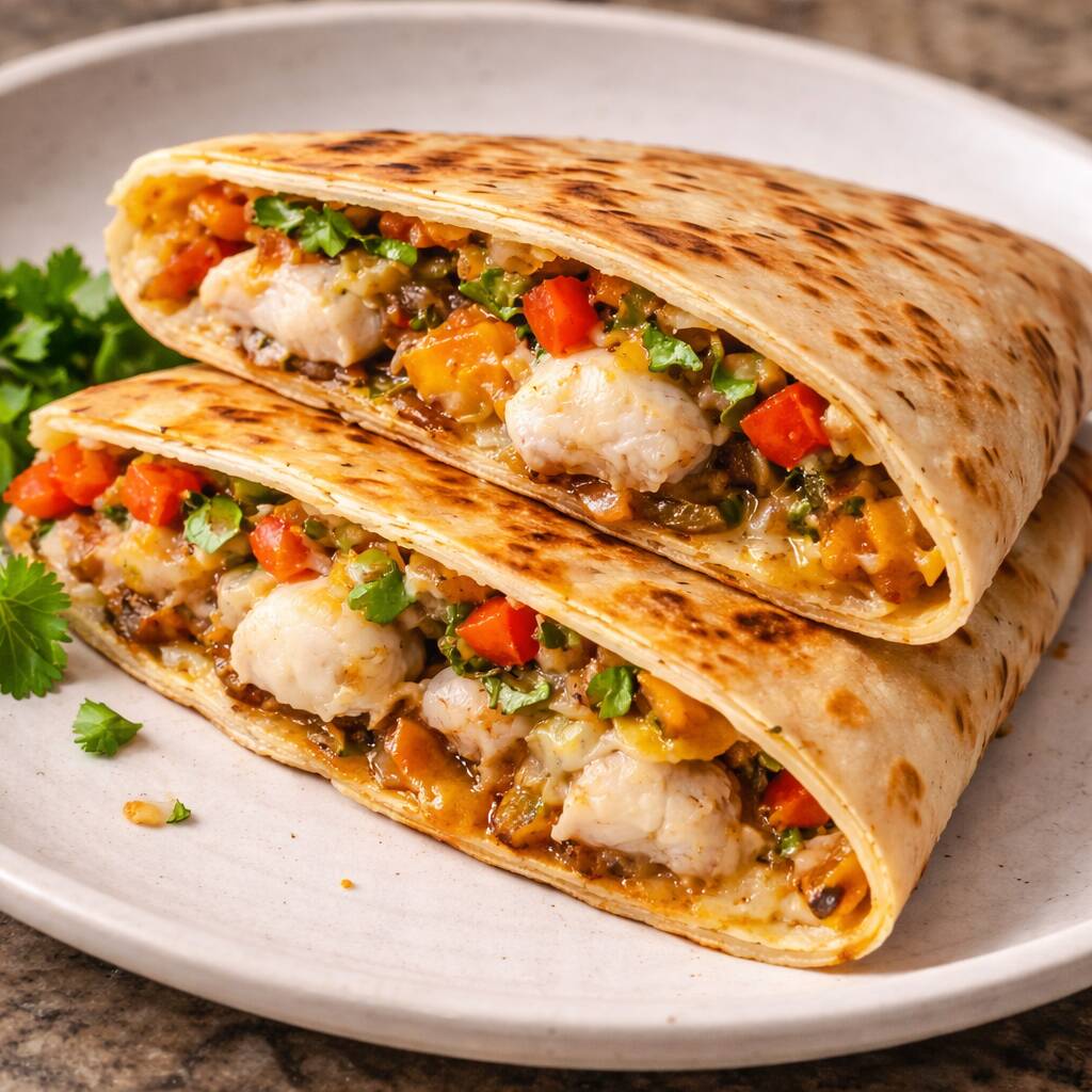 Deliciosa quesadilla preparada con tortilla doradita, rellena de pescado