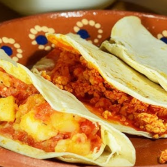 Huevos estrellados sobre tortillas fritas con salsa roja o verde, frijoles y queso rallado. Un plato mexicano lleno de sabor y tradición, ideal para un brunch lleno de carácter.