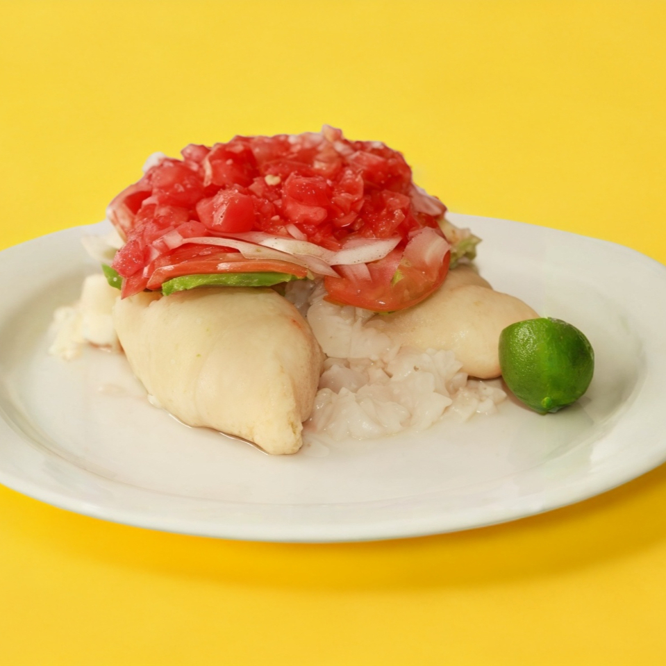 Duro, jamón, aguacate, jitomate, cebolla, salsa y limón.