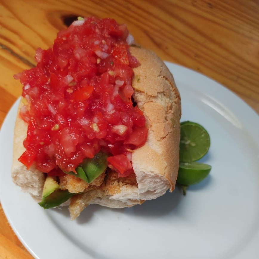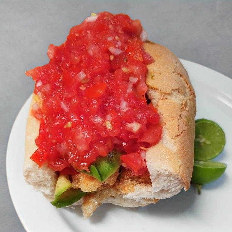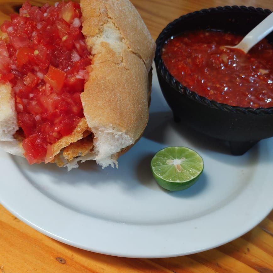 Bolillo, duro, aguacate, salsa y limón.