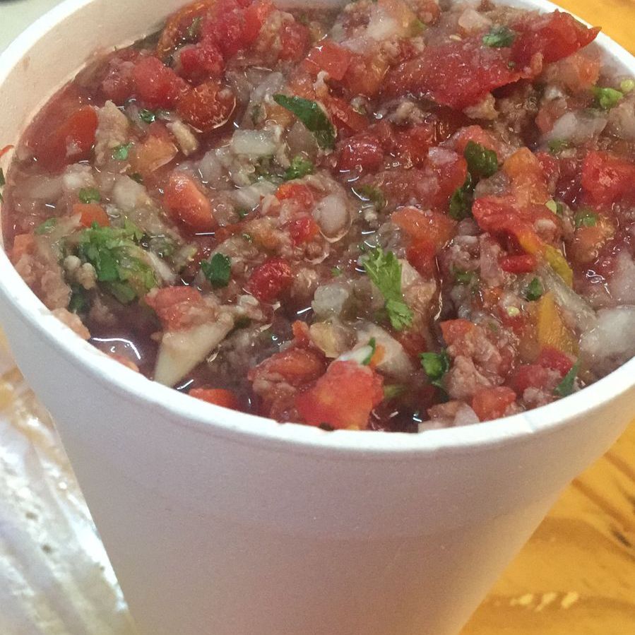 1 Litro de carne molida, aguacate, tostadas, salsas y limones.