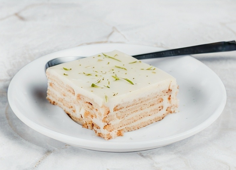 Pastel helado de galletas marias con crema de limon. Porcion individual.