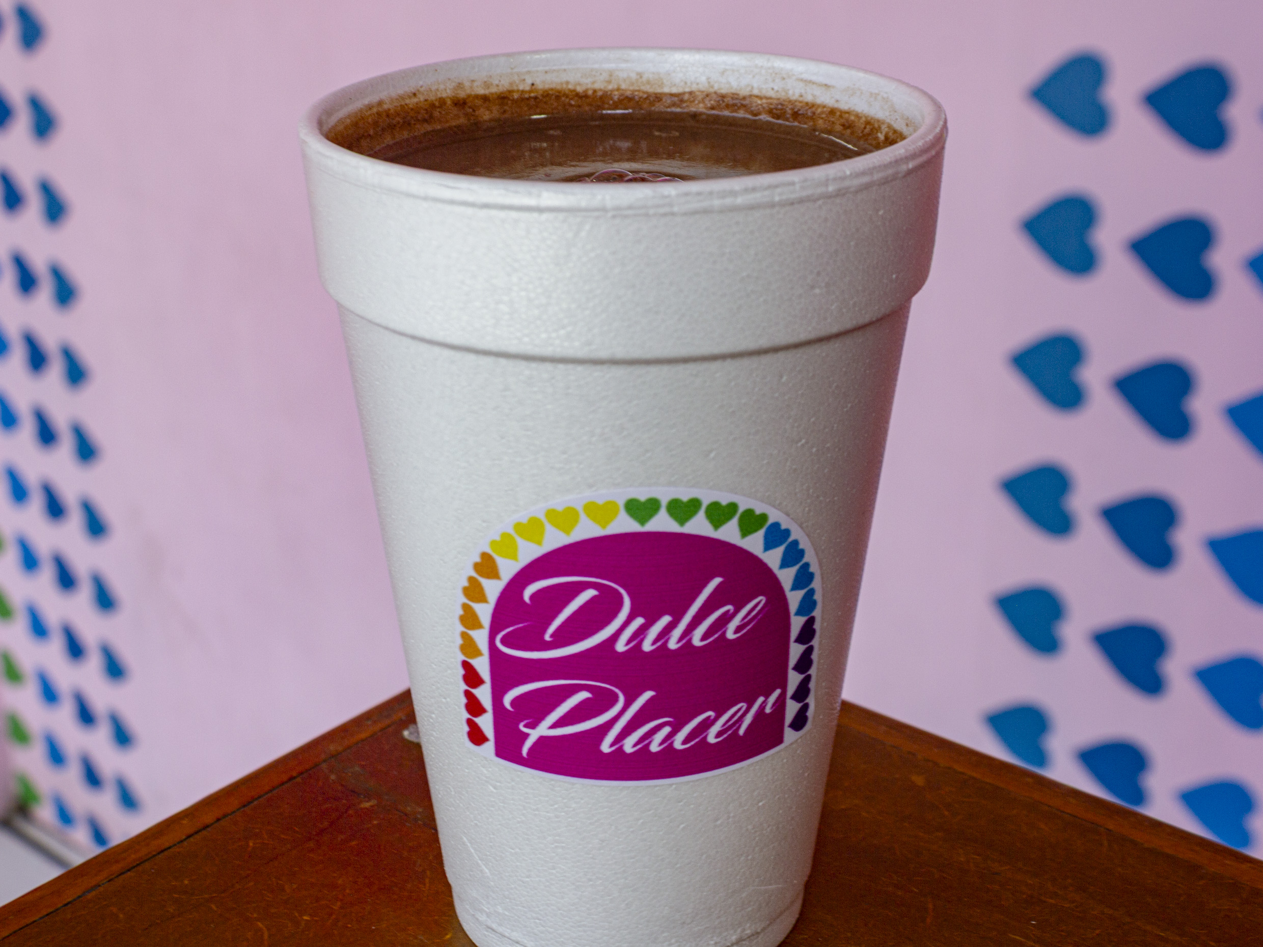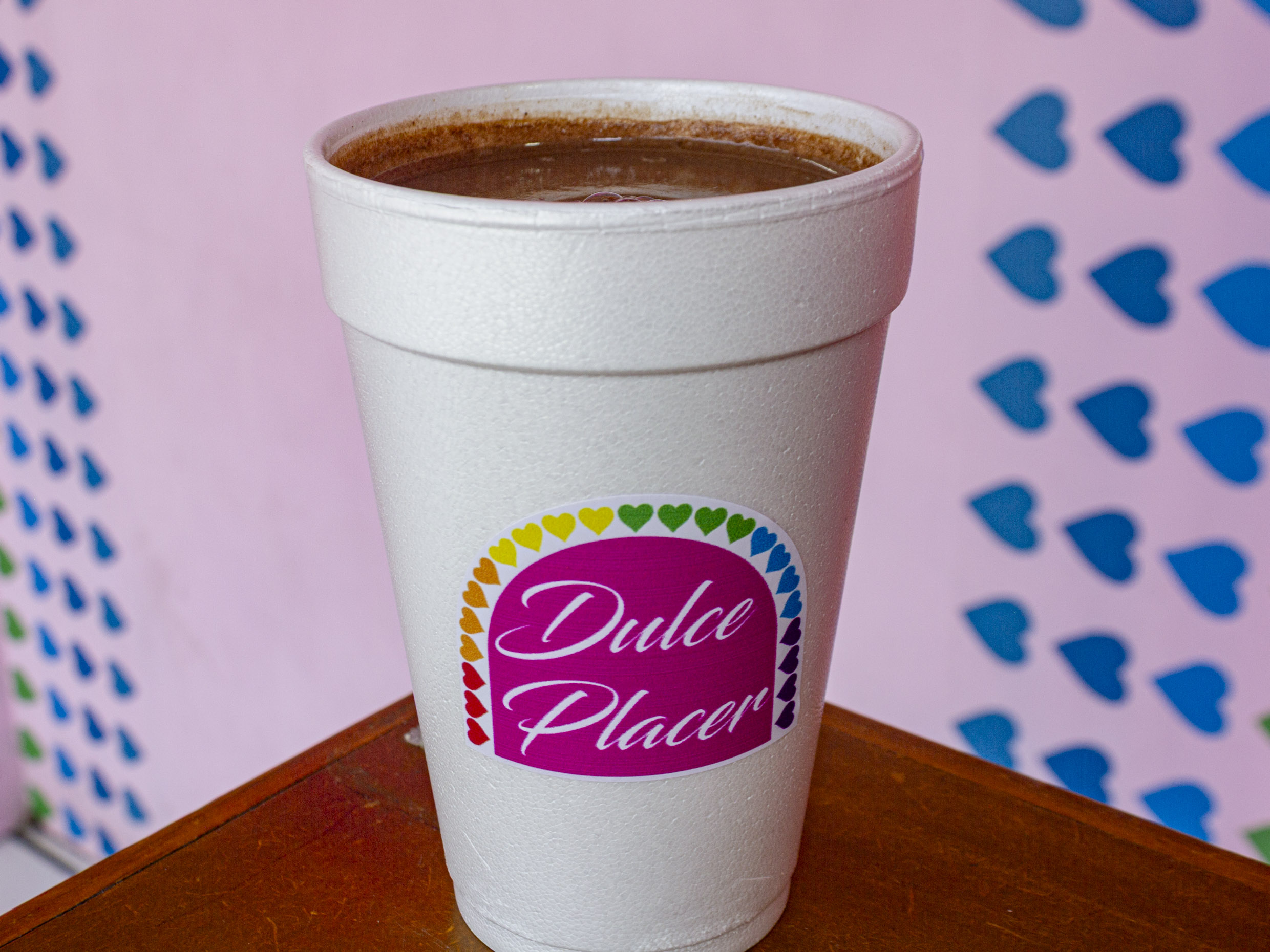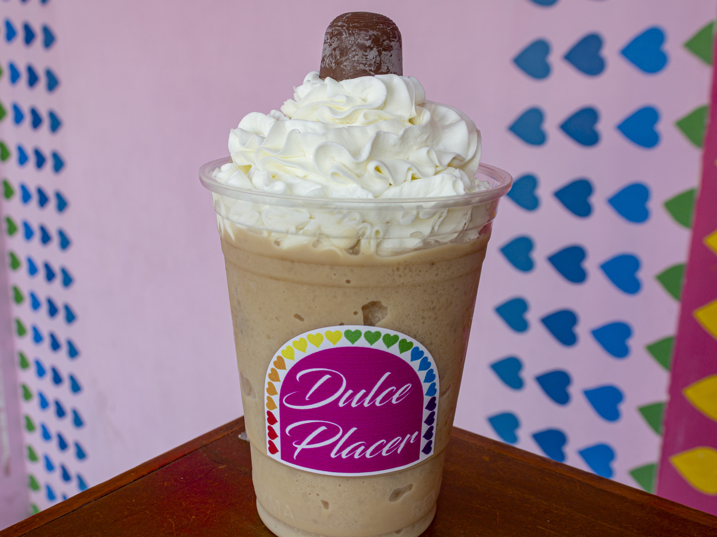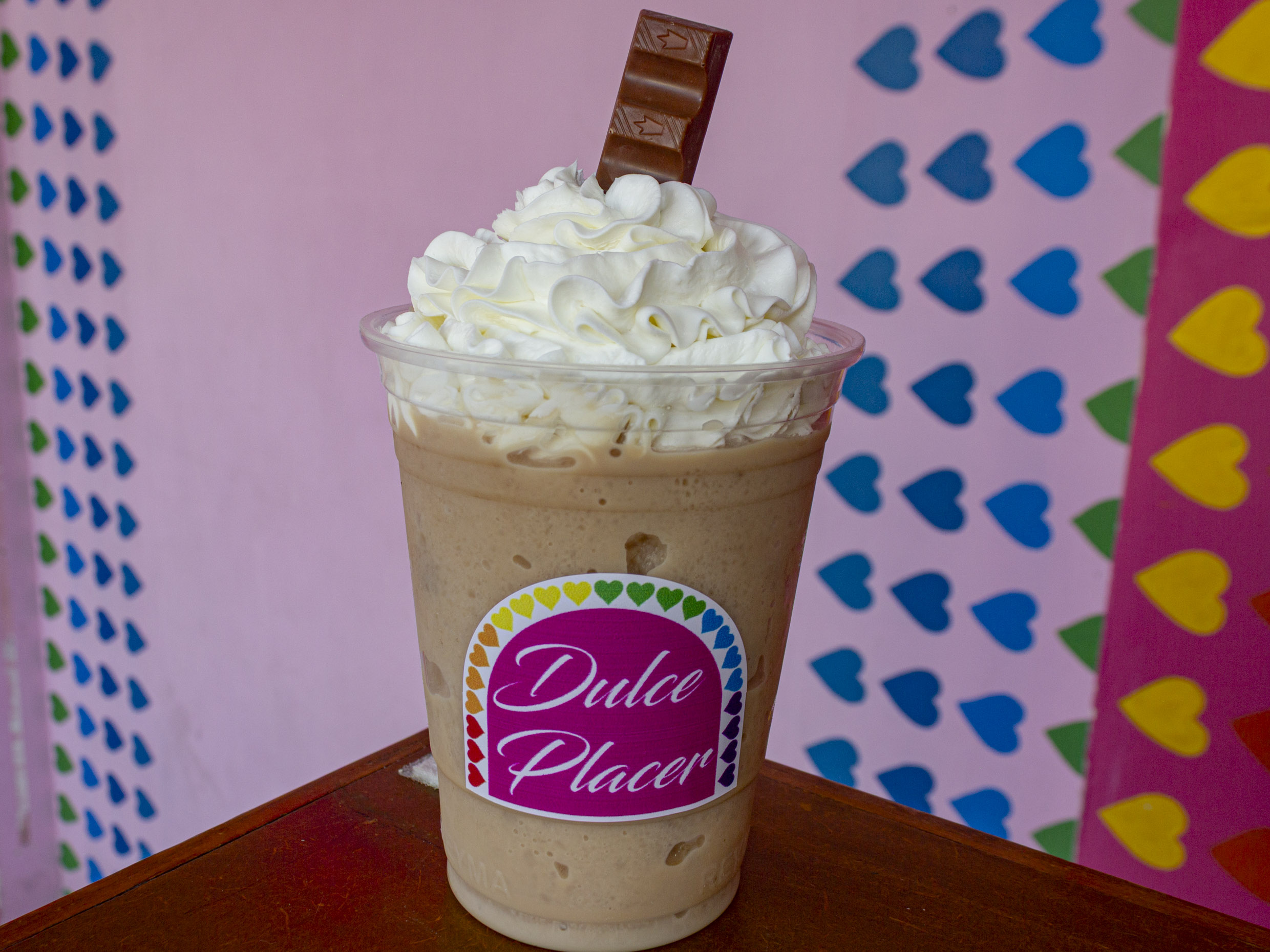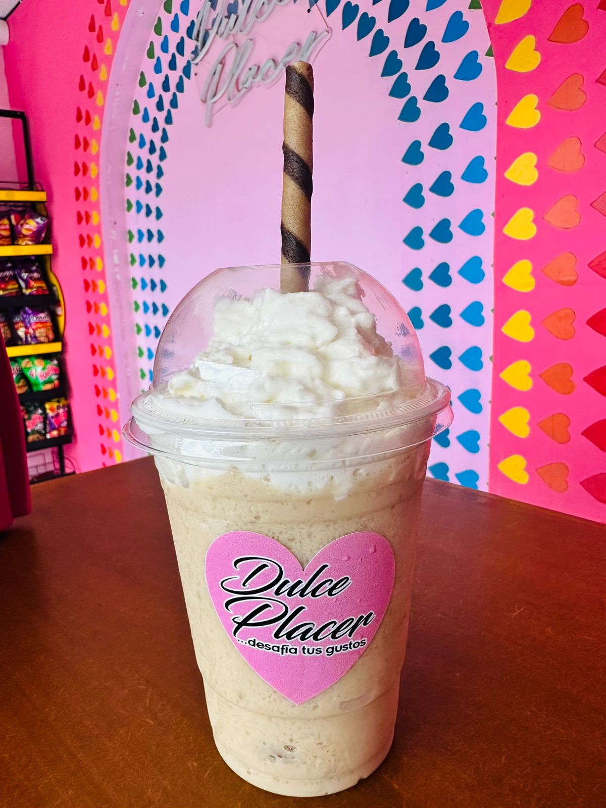Frappé de chocolate abuelita con mini pan de muerto relleno relleno