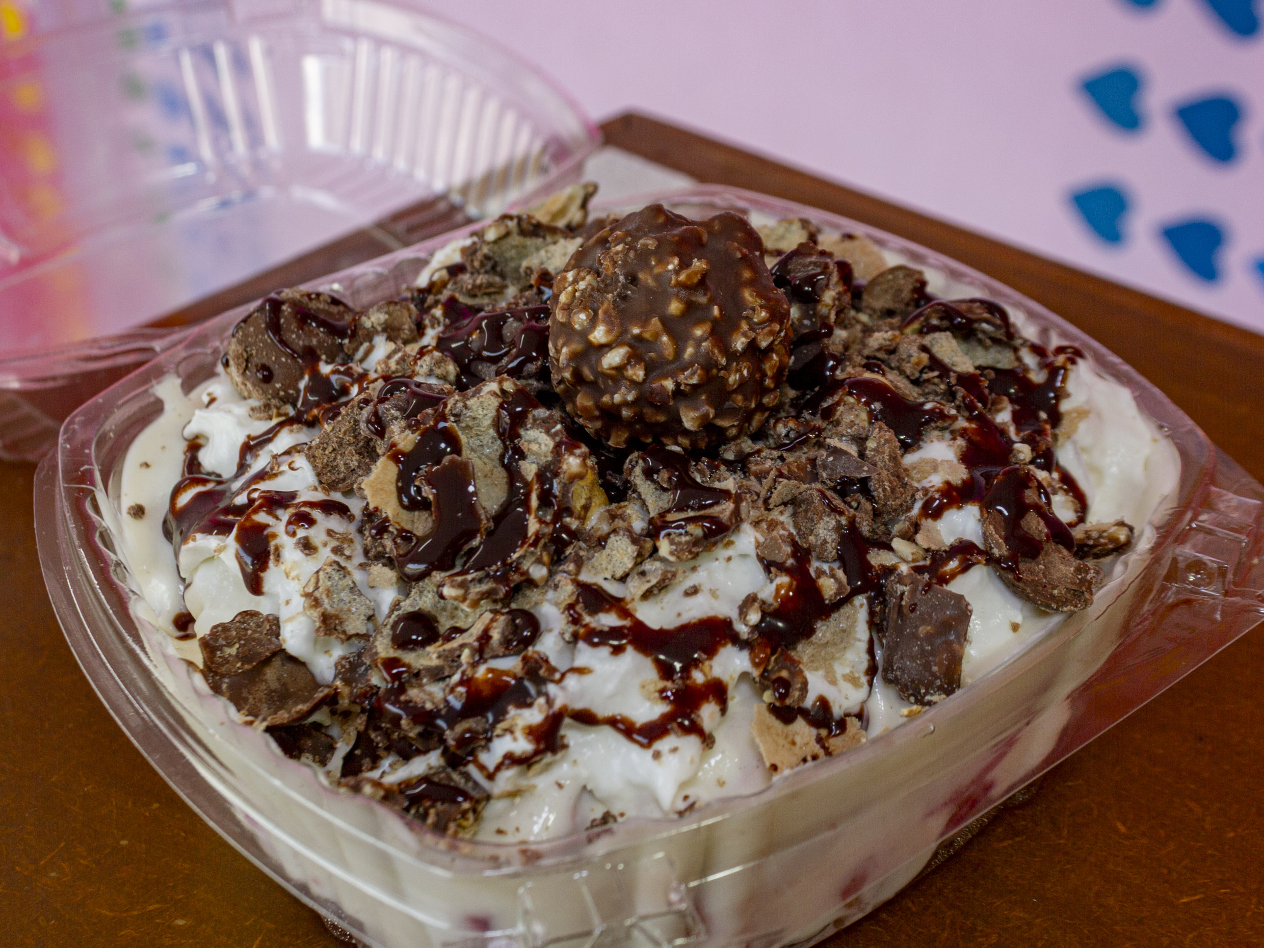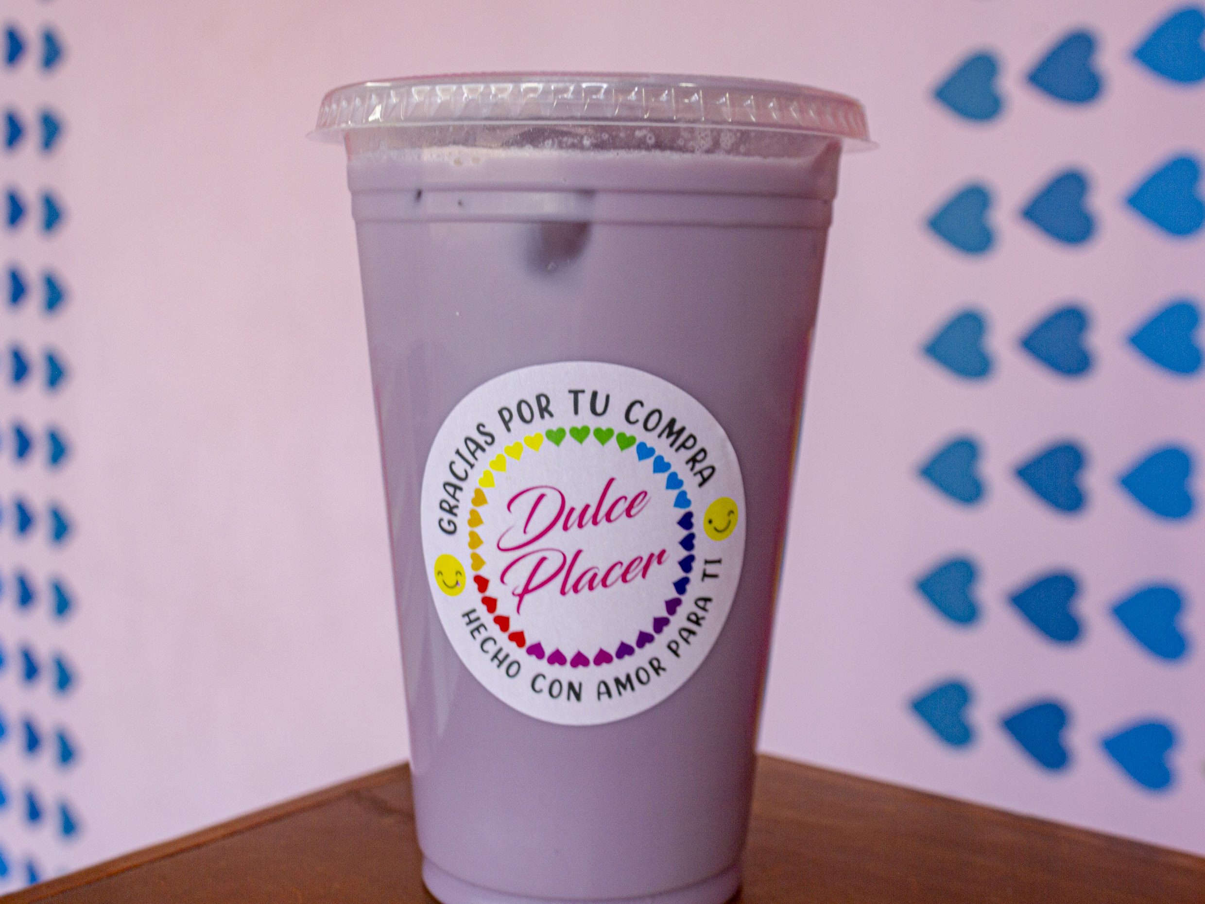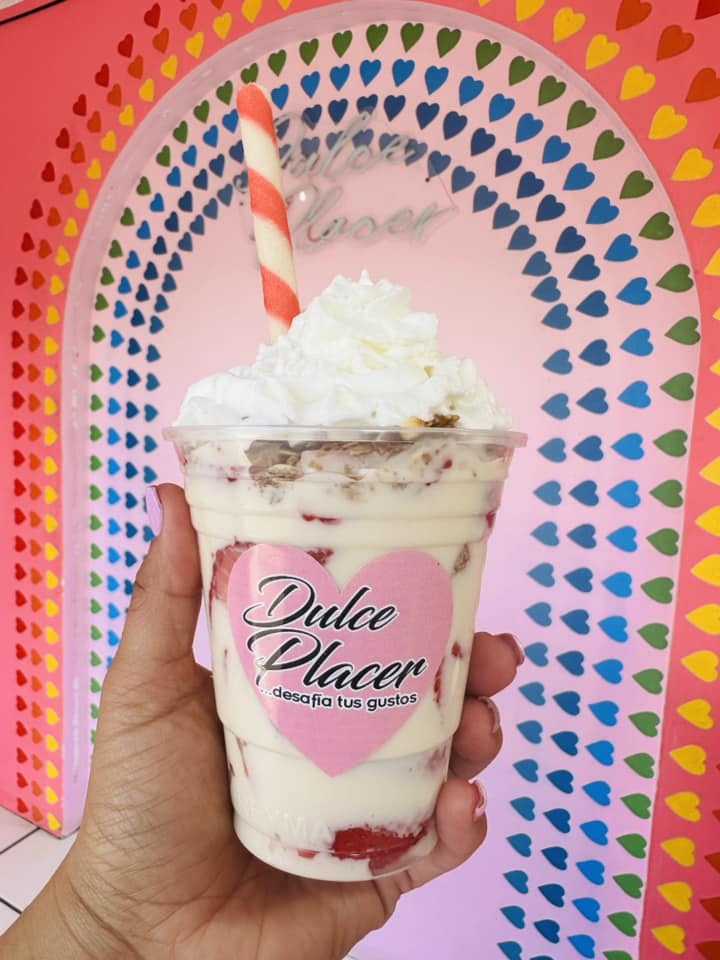 Vaso de 16 onzas de fresas naturales con crema dulce de la casa más topping