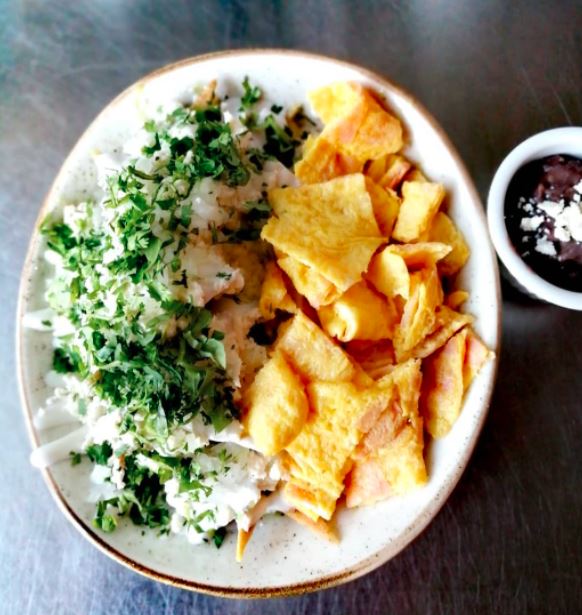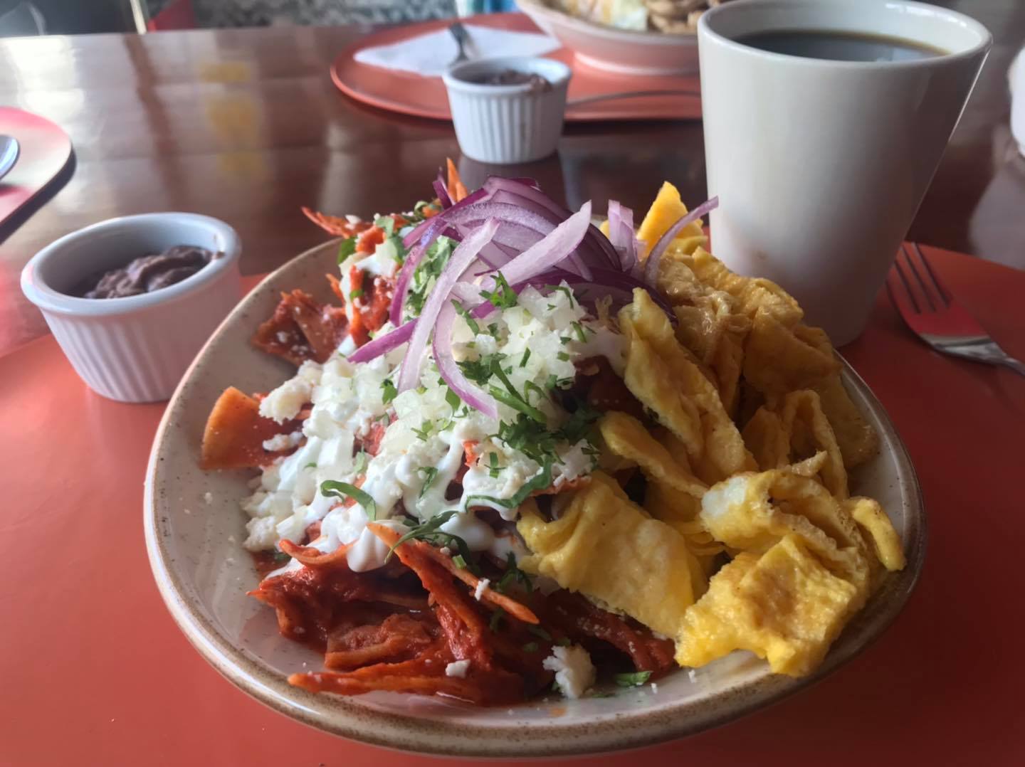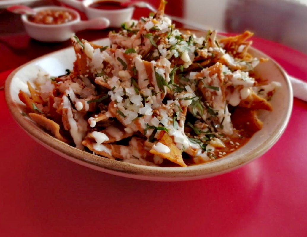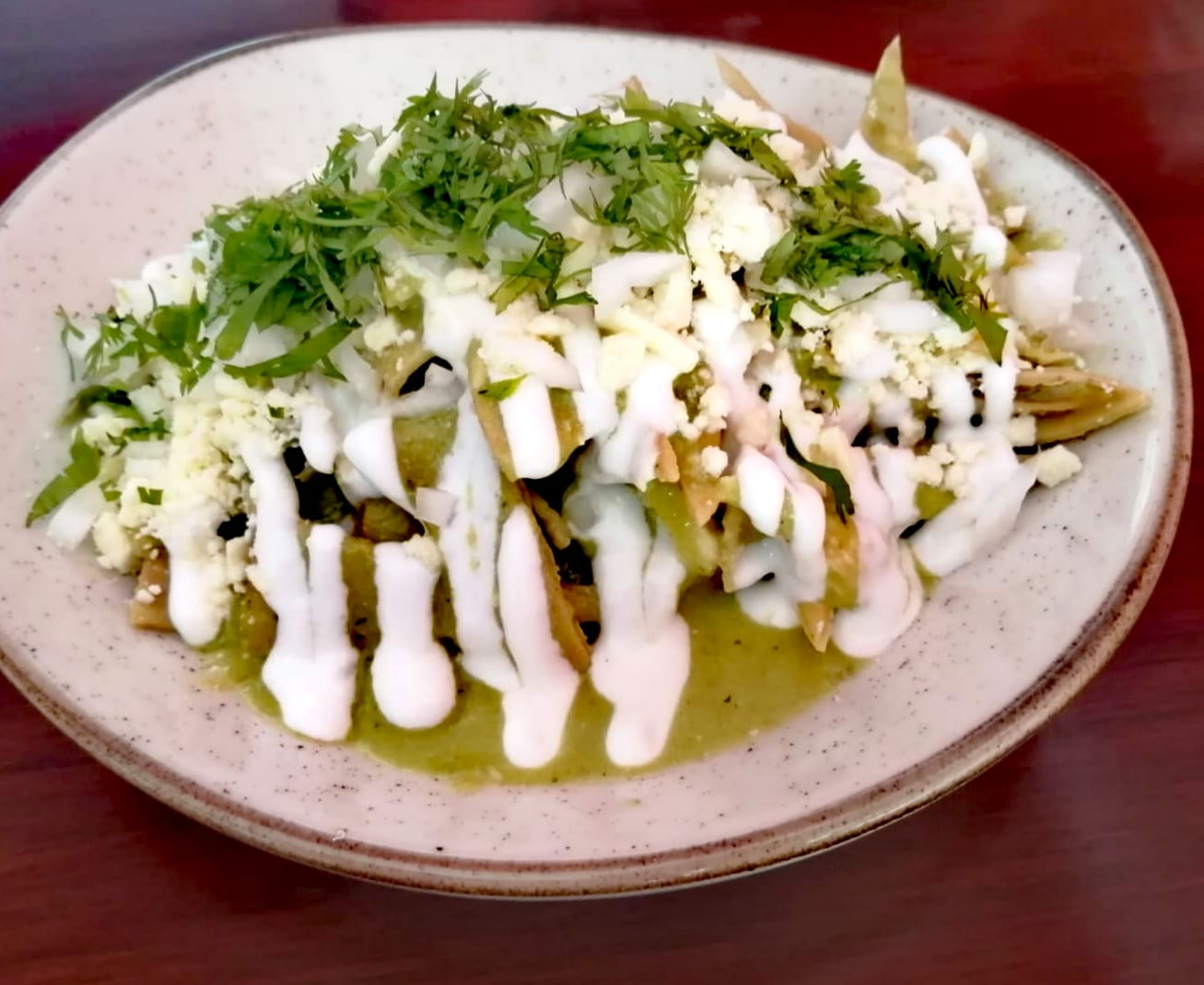 Chilaquiles acompañados de 2 piezas de huevo preparados a tu elección.