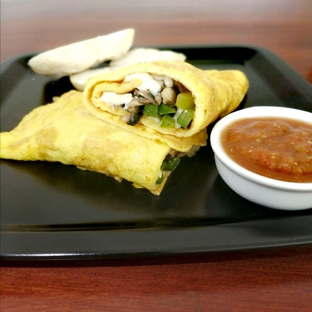 3 Piezas de huevo con queso, pimientos, cebolla y jitomate. Acompañados con pan rebanado.