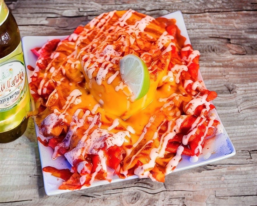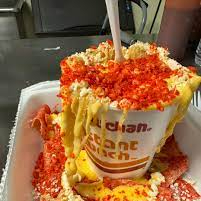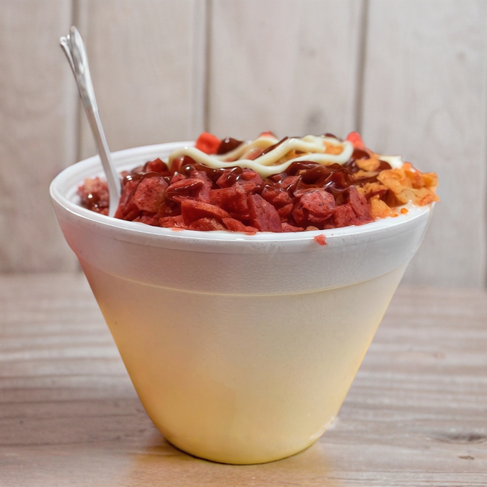 Frituras(Doritos rojos, Doritos negros, Doritos morados, Tostitos, Nachos o Maruchan) con Chayote, Papa o Brócoli aderezado con mayonesa, mantequilla, limón, queso rayado, queso amarillo, cacahuates y chile al gusto(picoso o no picoso).