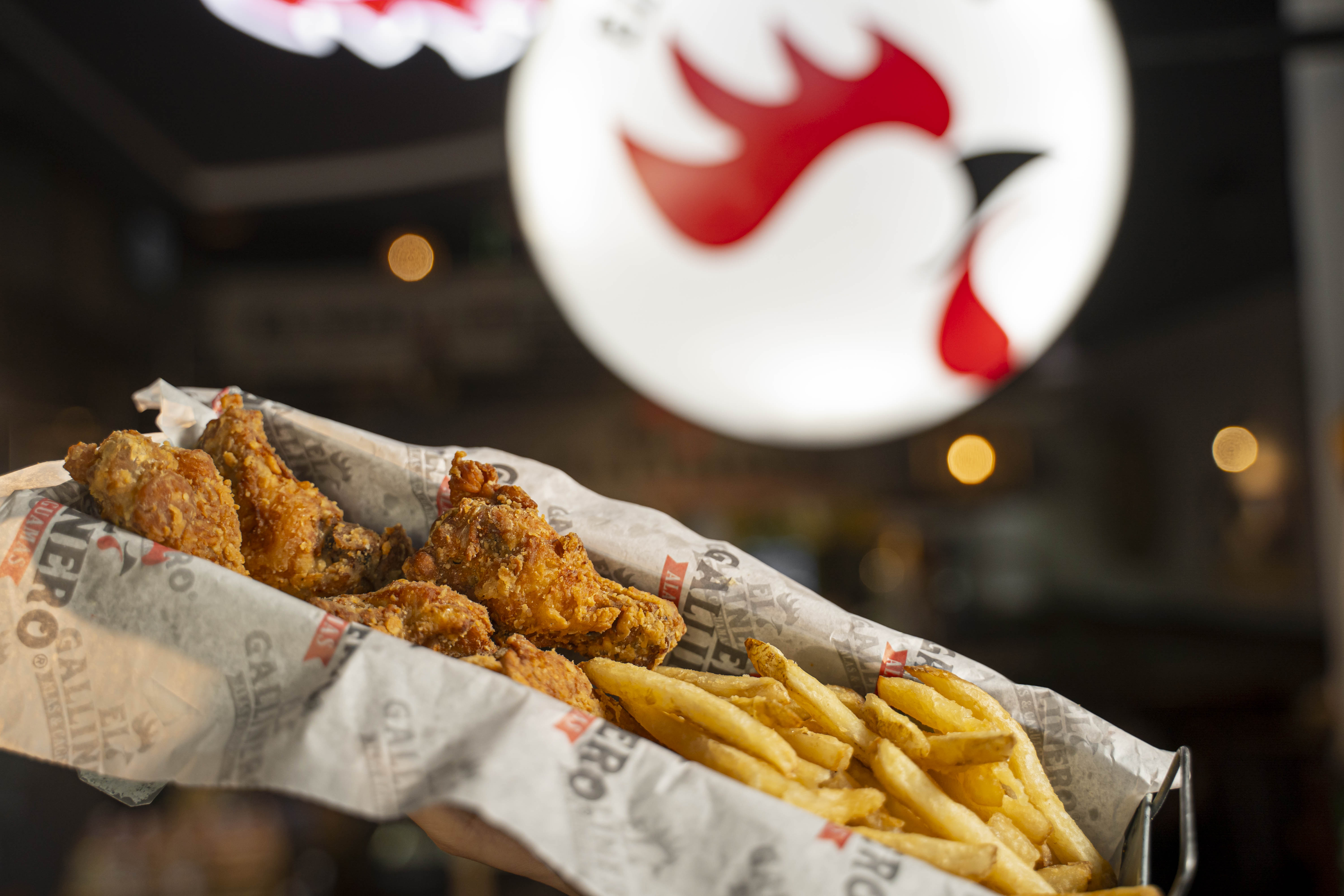 12 Tenders, 12 alas, 4 palitos de queso, 150 g de jalapeños y 250 g de papas a la francesa.