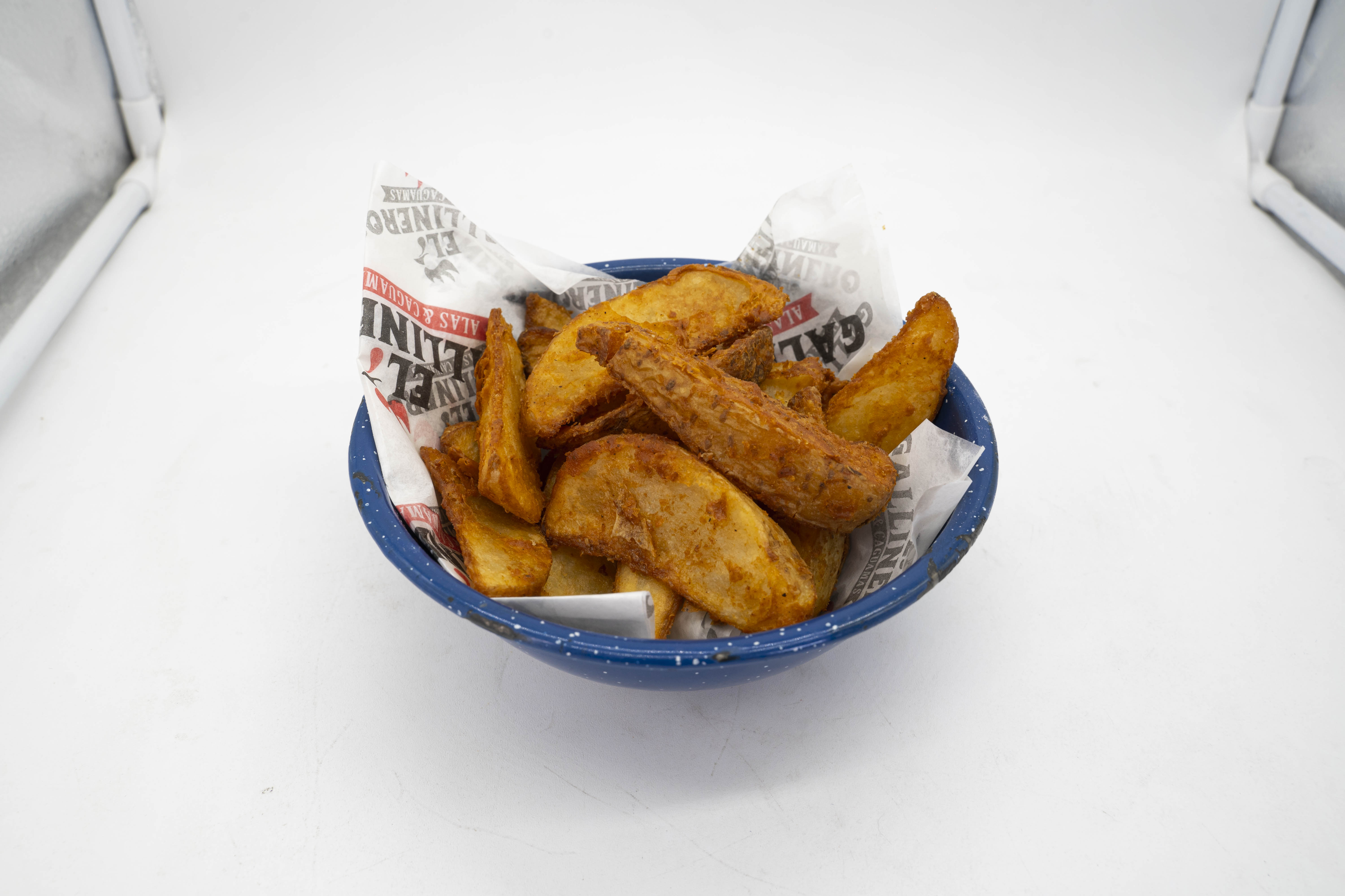 250 g De papas cortadas en gajos, sazonadas y crujientes.