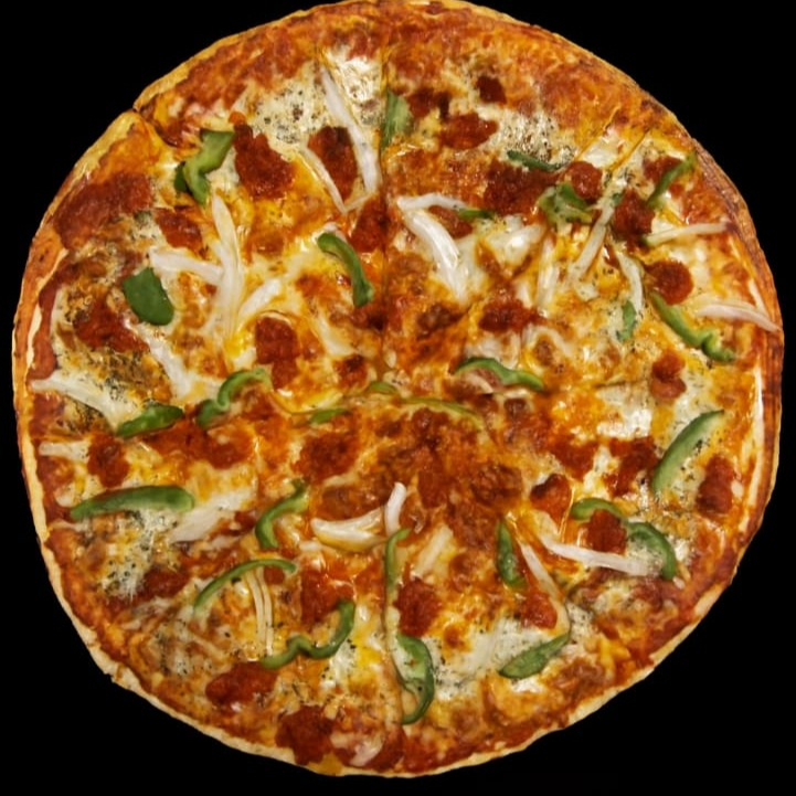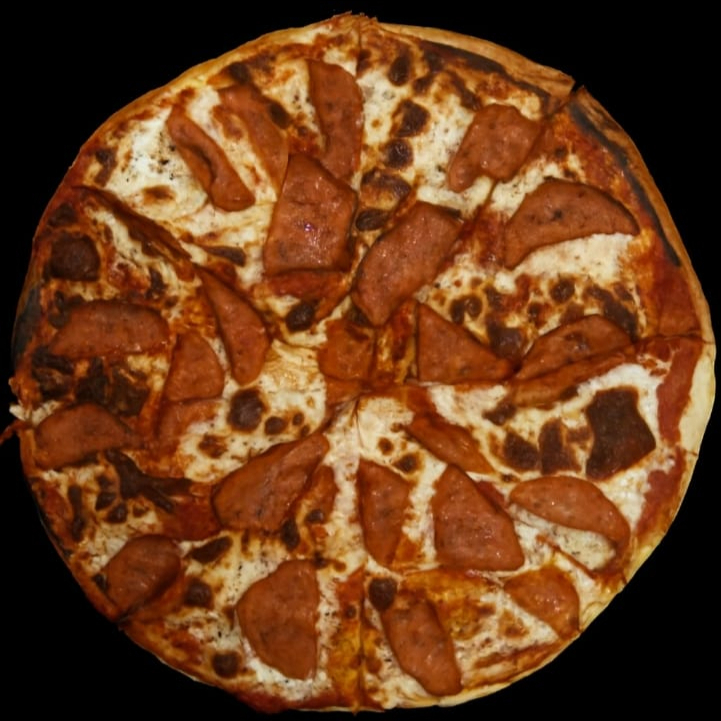 Queso mozzarella, salsa de tomate, jalapeño, cebolla y chorizo.