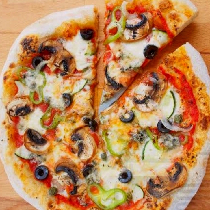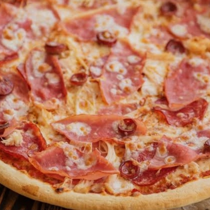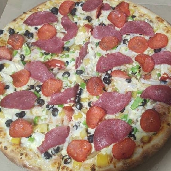 Salami, salchicha, champiñón, morrón, aceitunas, pepperoni.