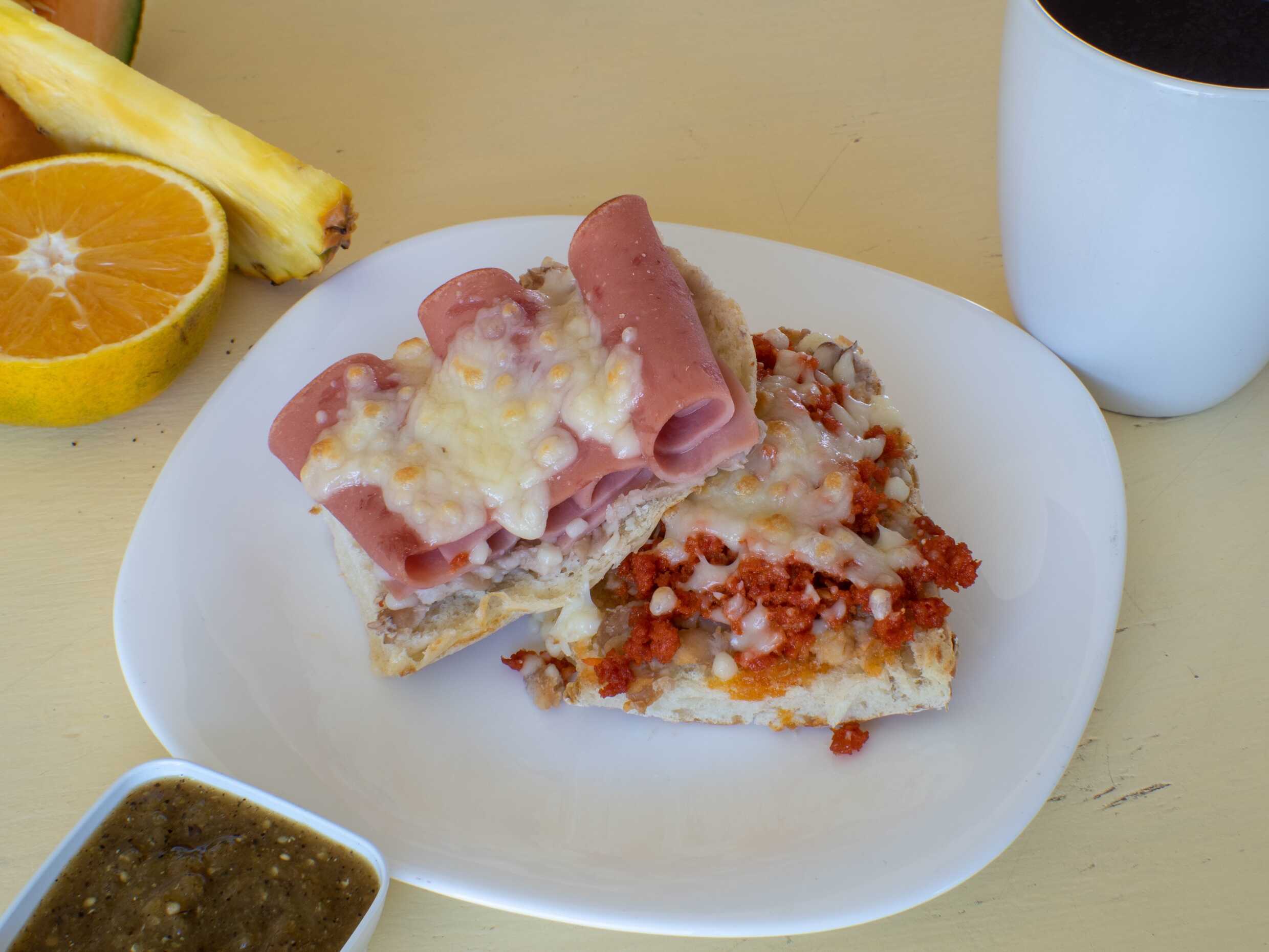 2 mitadas de bolillo con deliciosos frijoles, y proteina a elegir