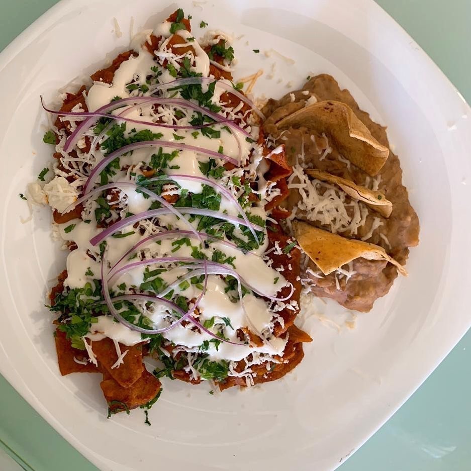 Deliciosos chilaquiles rojos, si deseas puedes agreagar proteina
