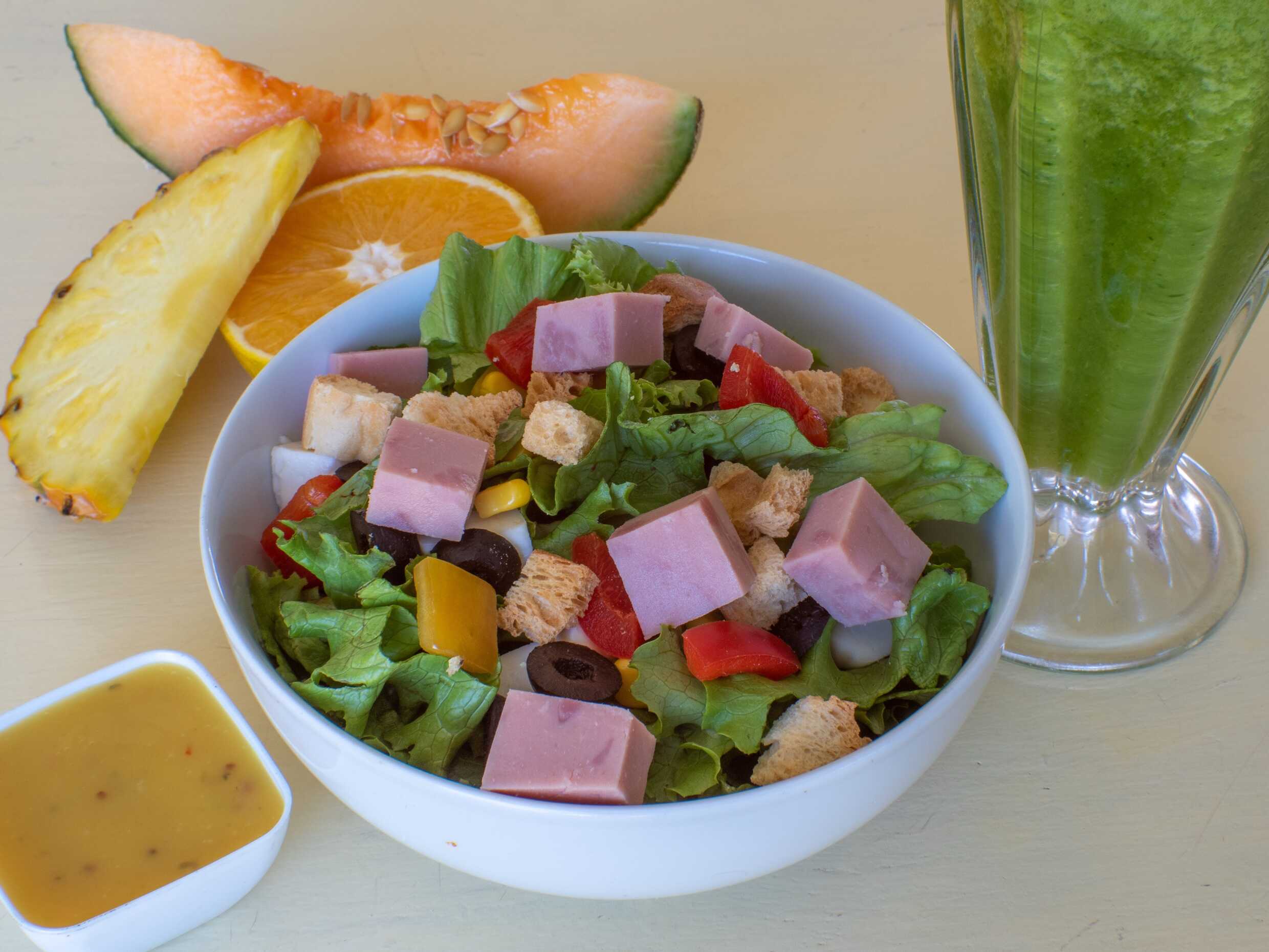 Preparado con aderezo ranch, lechuga, jamon de pavo, espinacas, queso panela, jitomate