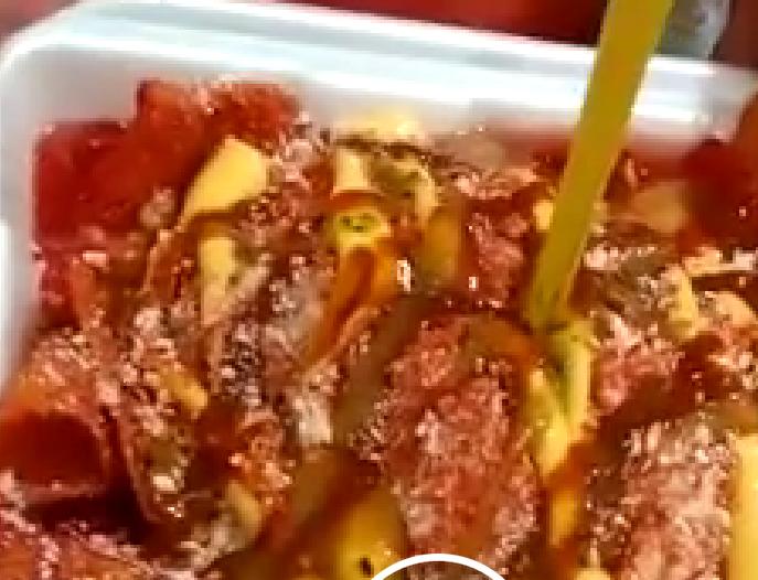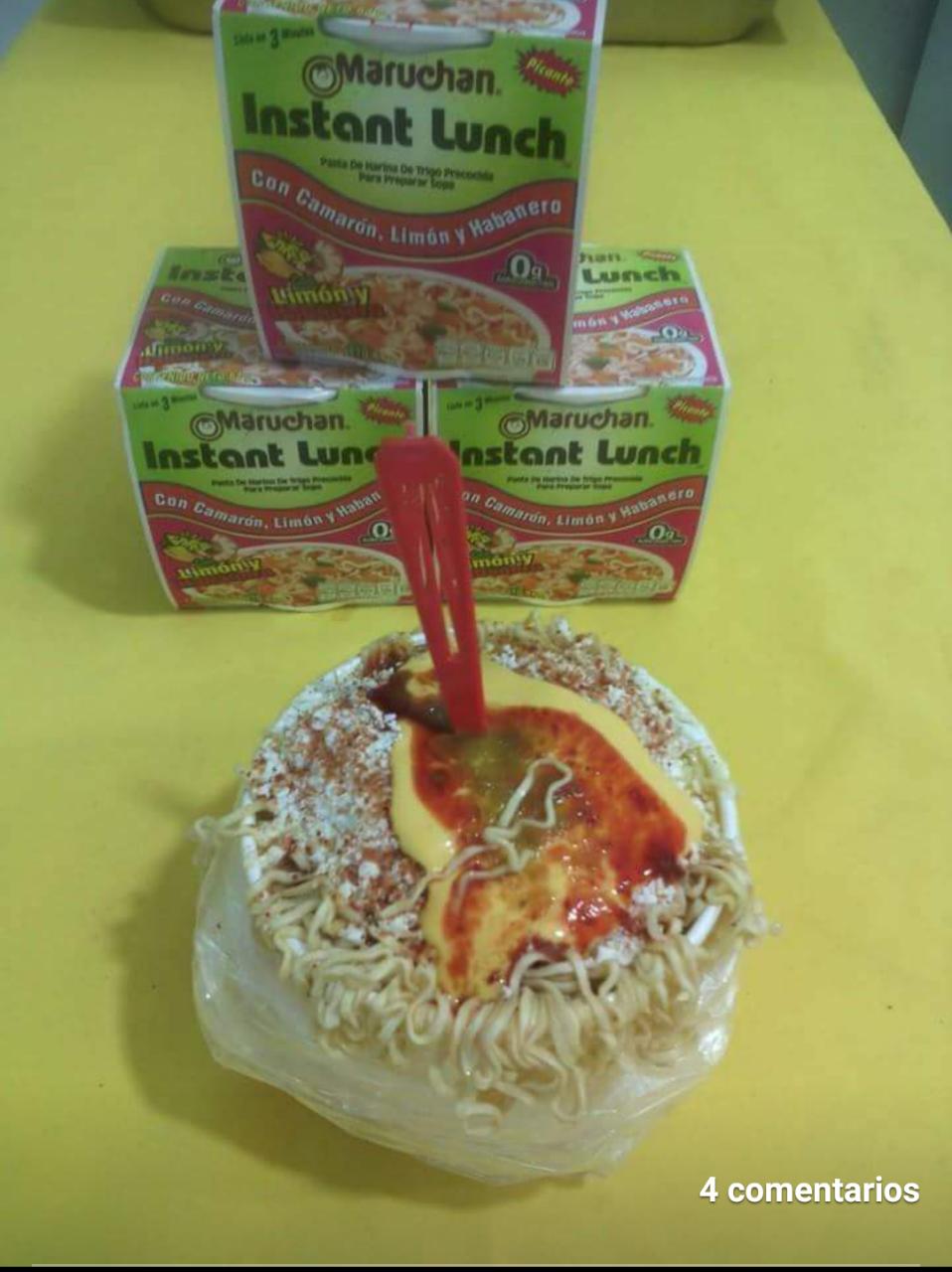 Doritos con Maruchan y elote preparados en un contenedor.