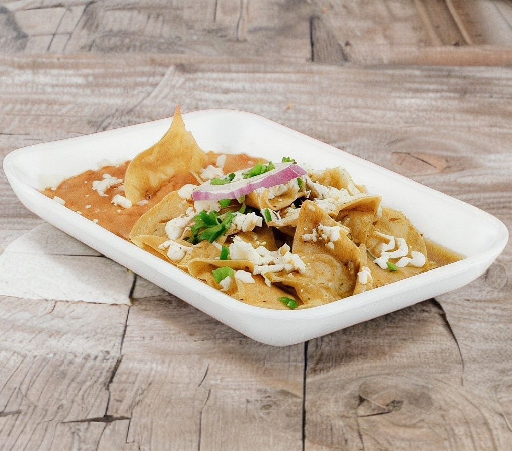 Chilaquiles Verdes Con Pollo Y Frijoles