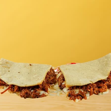Tortilla de maíz de comal con queso fundido.