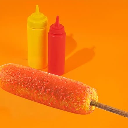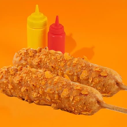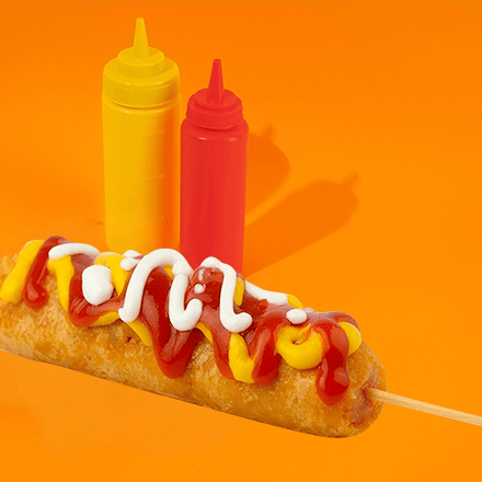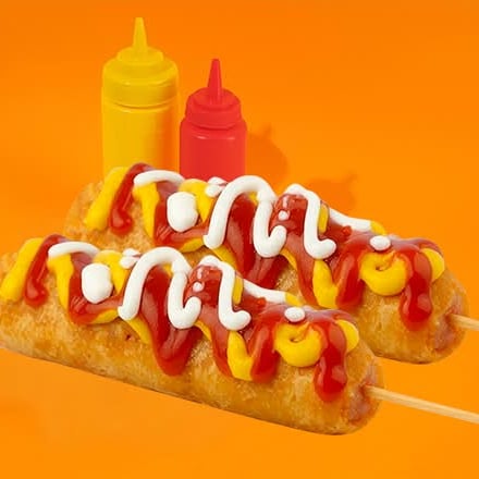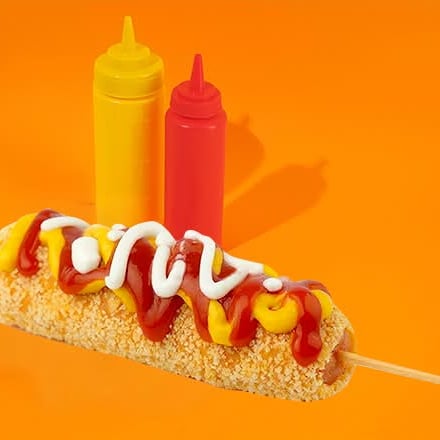 Deliciosa banderilla frita con mostaza, catsup y mayonesa