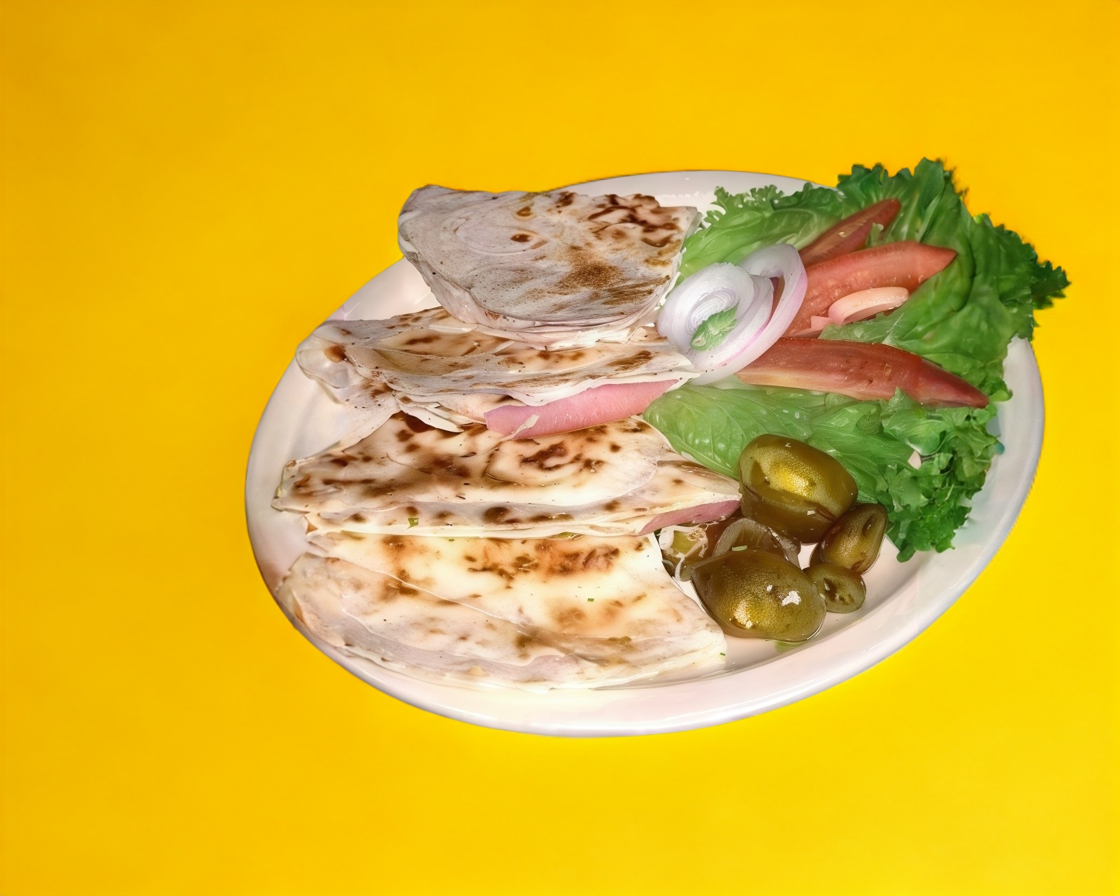 2 tortillas, Jamón, Queso Amarillo, Queso Blanco
