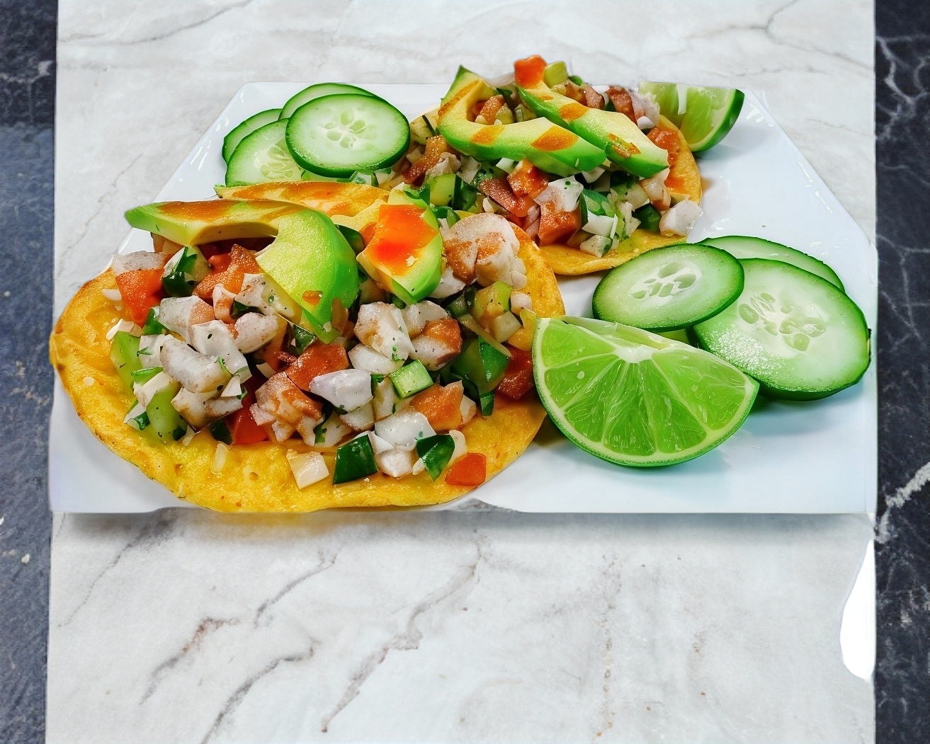 Es un aperitivo frío a base de camarones, pulpo, ostiones acompañado de jitomate,cebolla y cilantro.