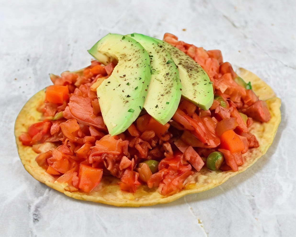 Ceviche de Pescado molido , acompañado de jitomate , cebolla y cilantro , aderezado con Capsut.