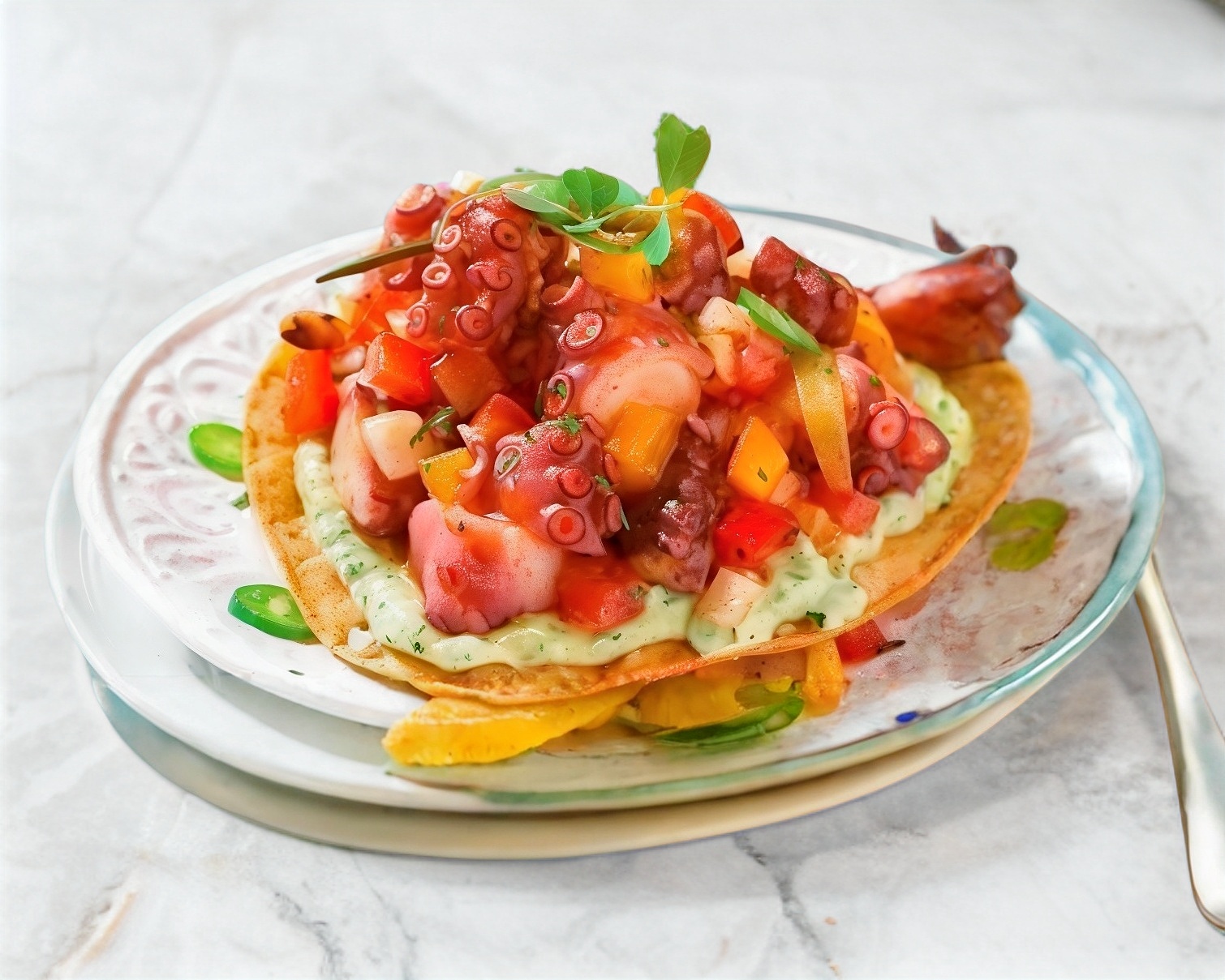 Es un aperitivo frío a base de pulpo , acompañado de jitomate,cebolla y cilantro.